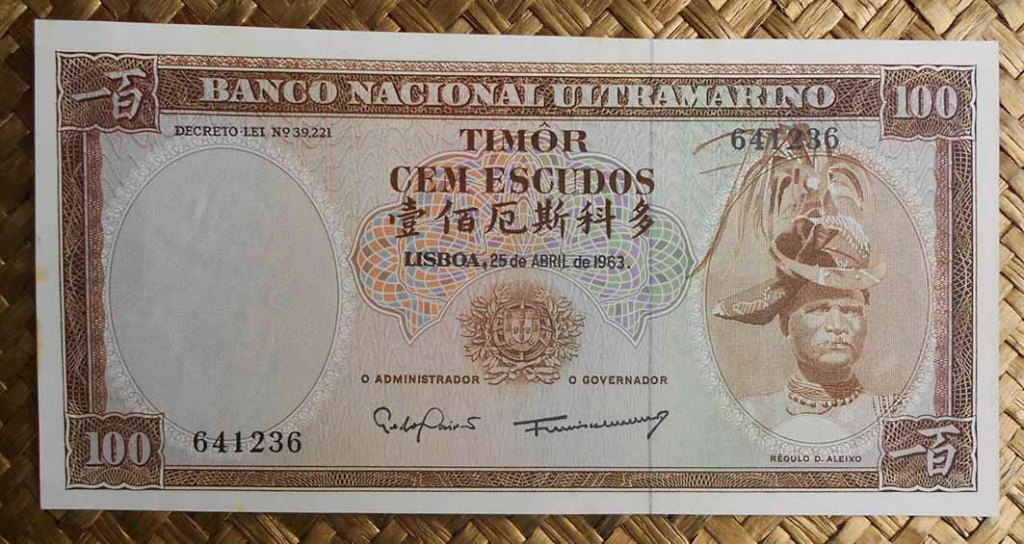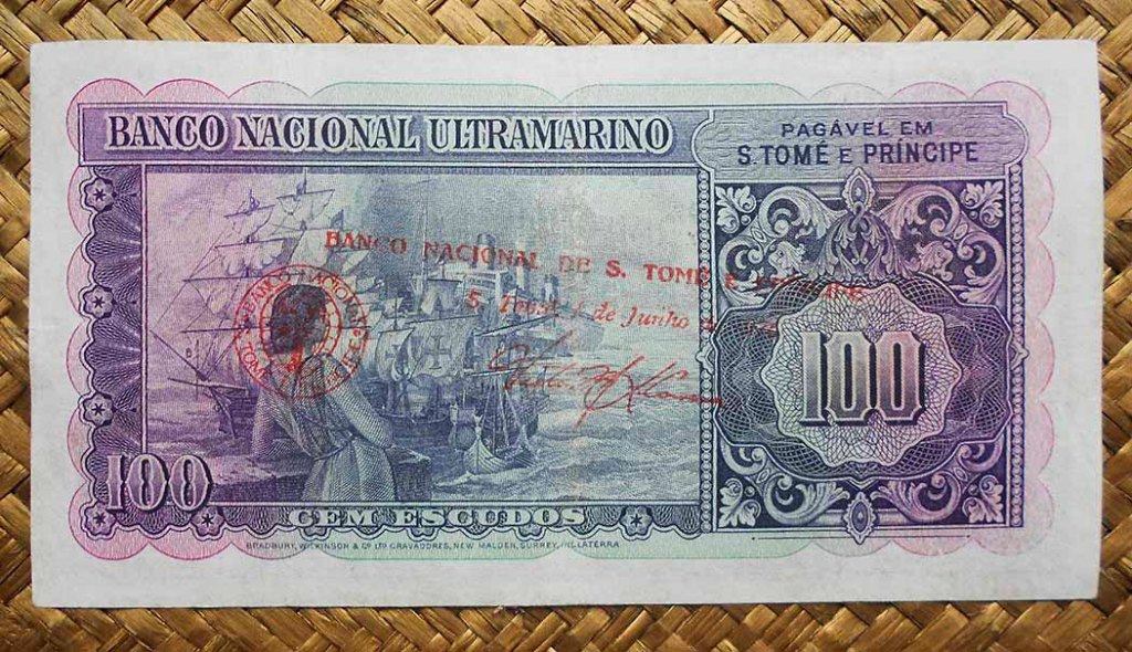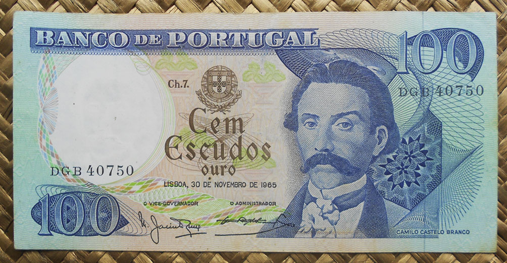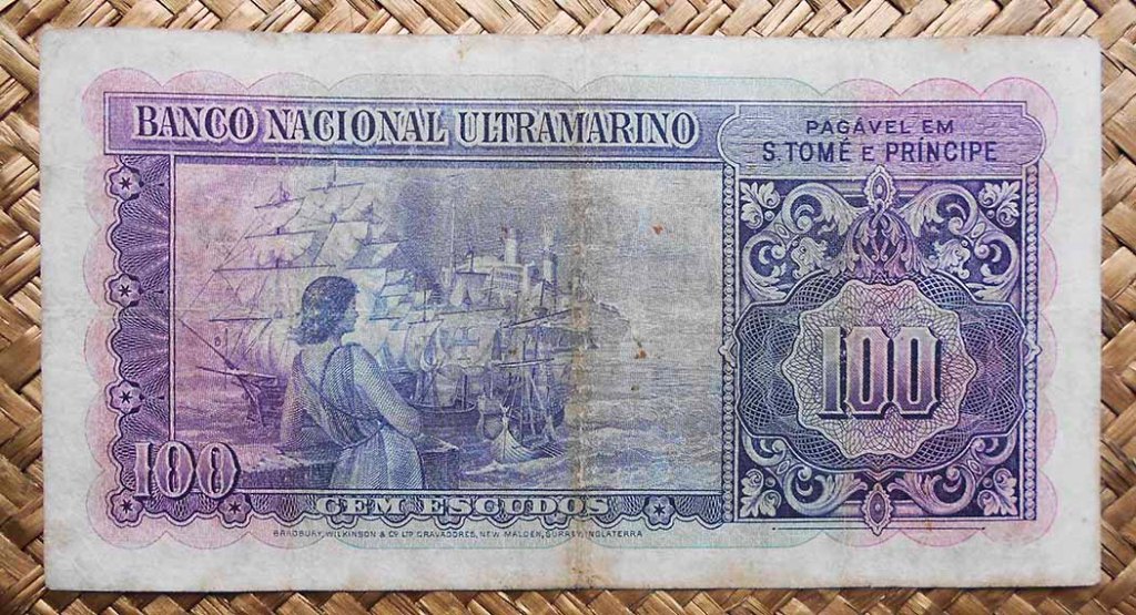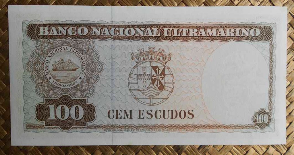 El ejemplar de 100 escudos de Angola de 1962 mantiene el viñeteado del billete de 1956 pero mostrando en el óvalo del anverso a Américo Tomás y actualizando la fecha de emisión en su cartela superior. También cambia su tonalidad cromática a rojo burdeos en ambos lados.