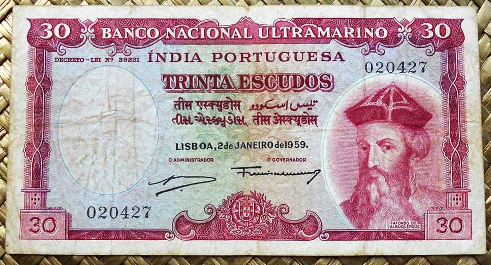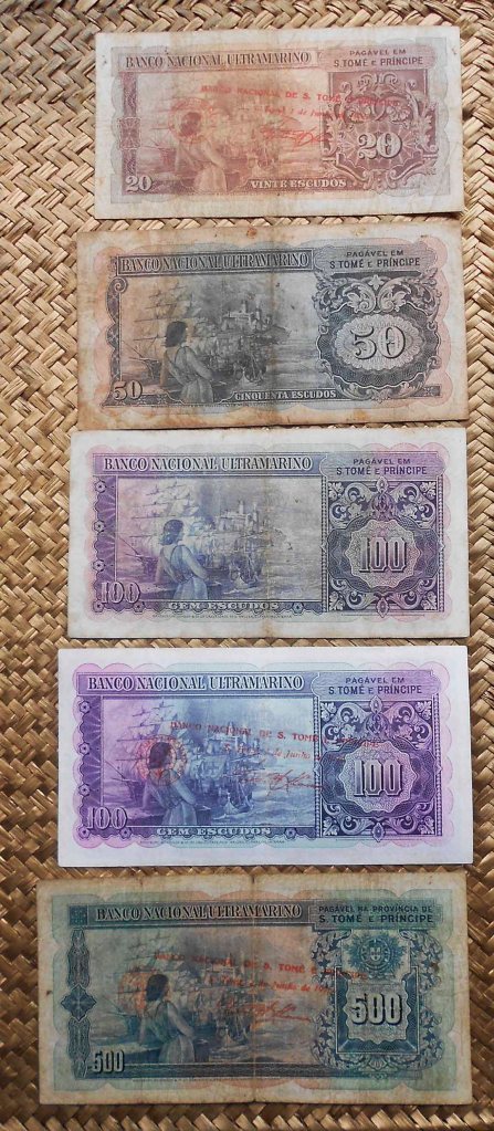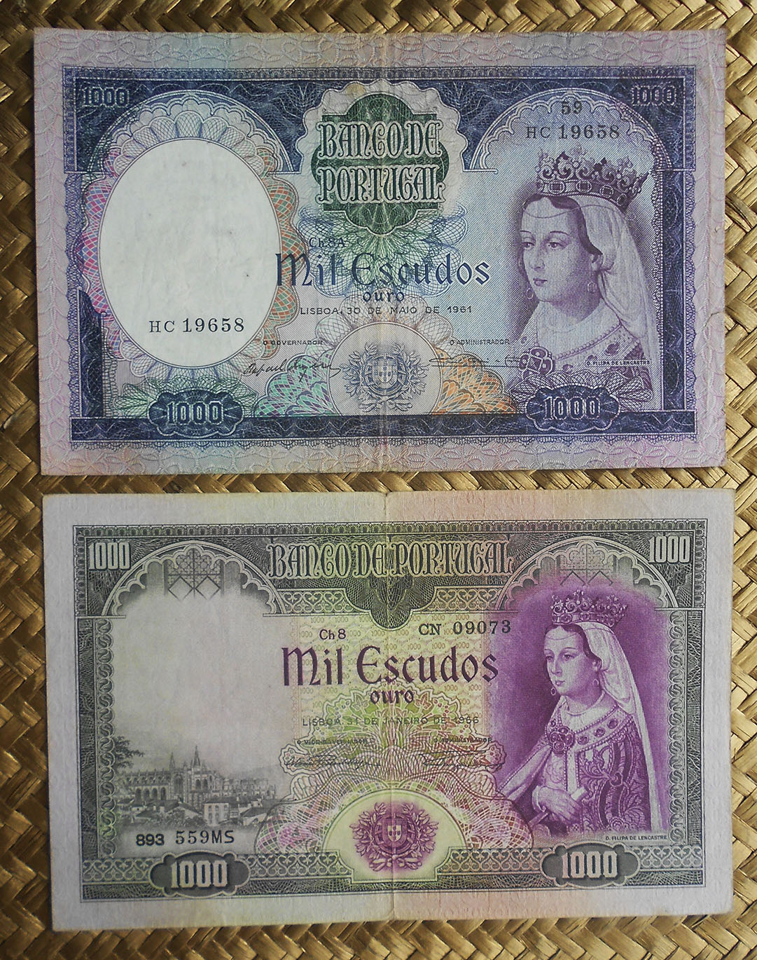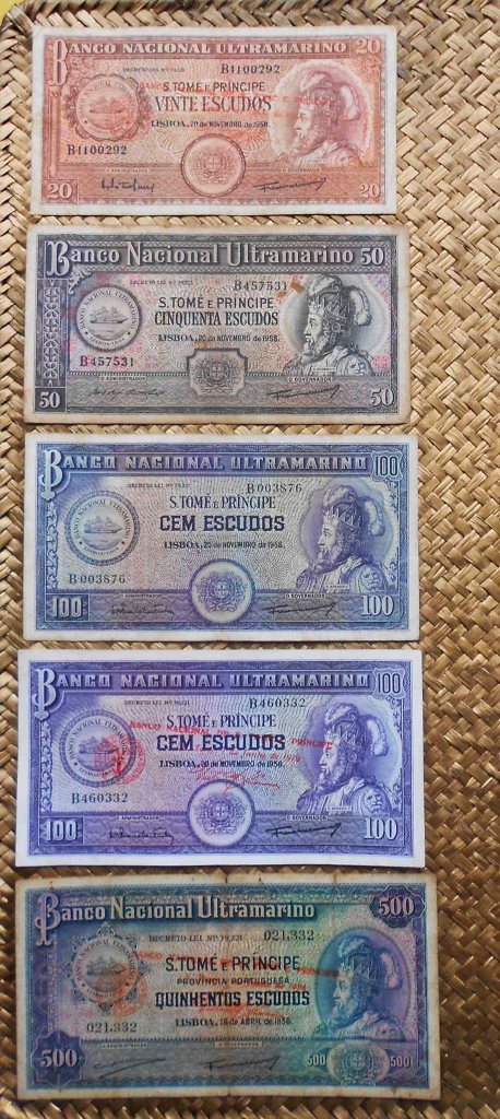 Contemplaremos sus primeras series de billetes que recuperan como moneda al escudo angoleño en sustitución del angolar (moneda de curso legal en la colonia desde 1928 a 1958). El escudo angoleño se mantendría en vigor hasta la independencia de la colonia, en 1975. A partir de entonces la moneda de Angola sería el kwanza. Revisaremos la serie emitida en 1956 (valores de 20, 50, 100, 500 y 1.000 escudos) y la serie emitida en 1962 (20, 50 y 100 escudos) con el ejemplar de 1.000 escudos emitido en 1970, todas ellas a cargo del Banco de Angola, creado por los portugueses en 1926. Fueron impresas por la empresa inglesa Thomas de La Rue & Co. Ltd.