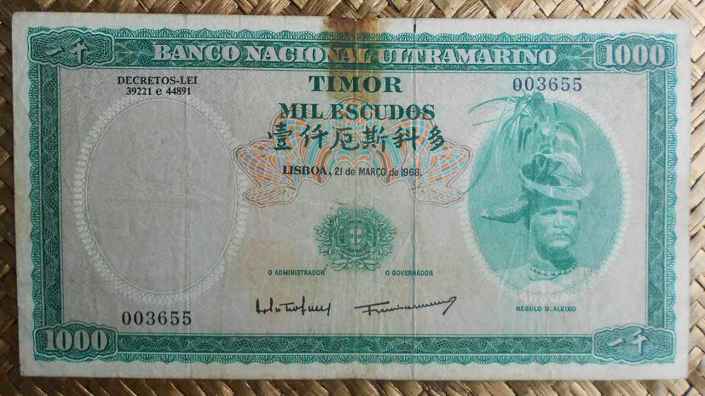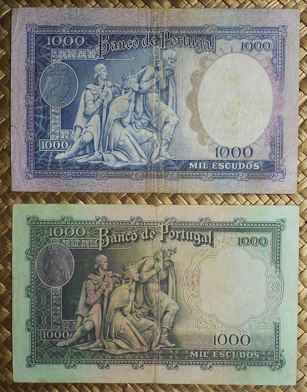 El ejemplar de 1.000 escudos de Angola de 1970 fue una reedición del billete de 1.000 de 1962. Ambos compartían viñetas con el ejemplar anterior, de 1956, con un anverso similar salvo en el personaje homenajeado, que mostraría al presidente Américo Tomás sustituyendo a Brito Capelo, manteniendo el reverso idéntico, salvo cromaticidades. Las tonalidades de este último ejemplar son azul cobalto en anverso y azul turquesa en reverso.