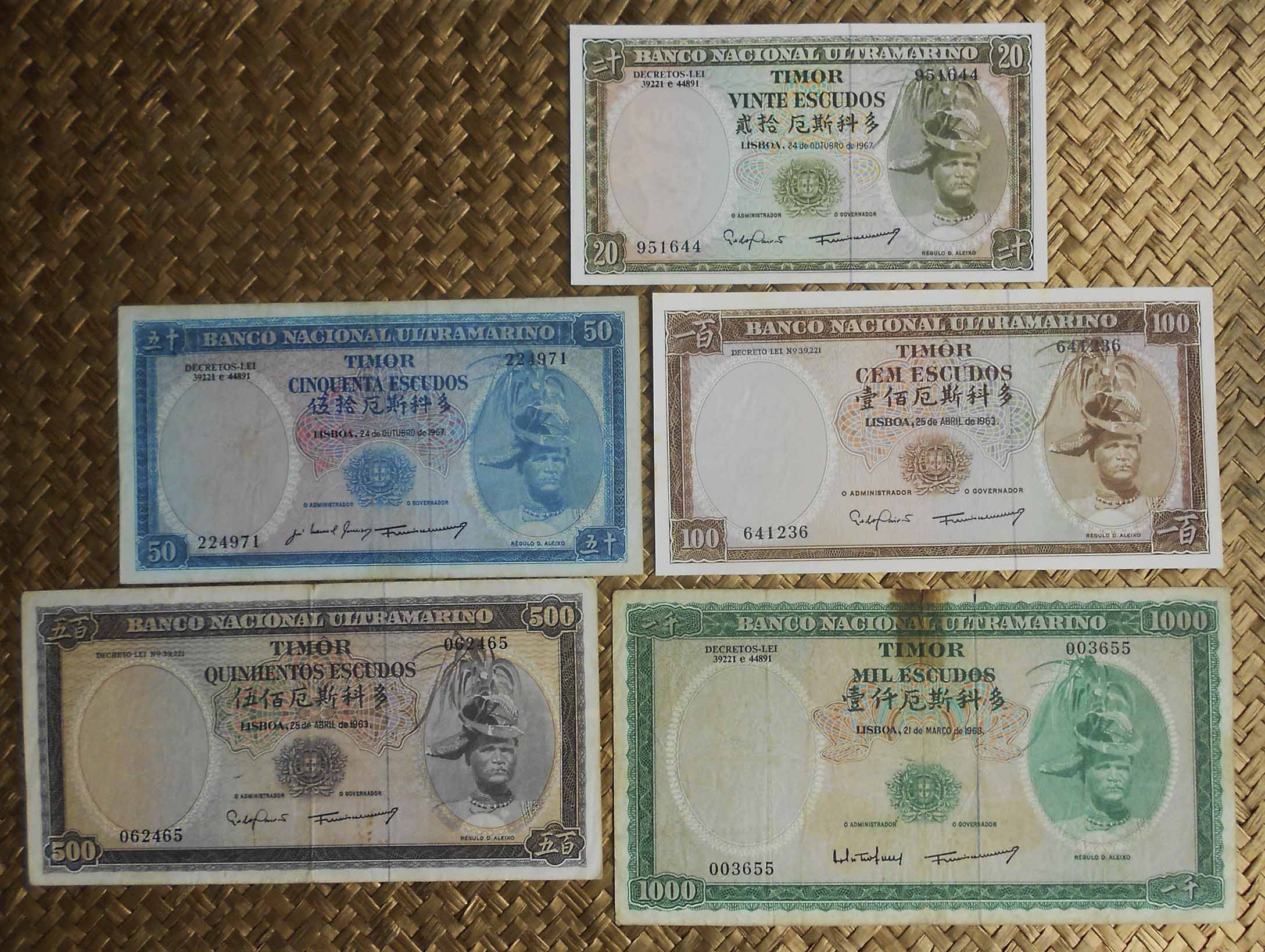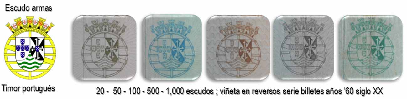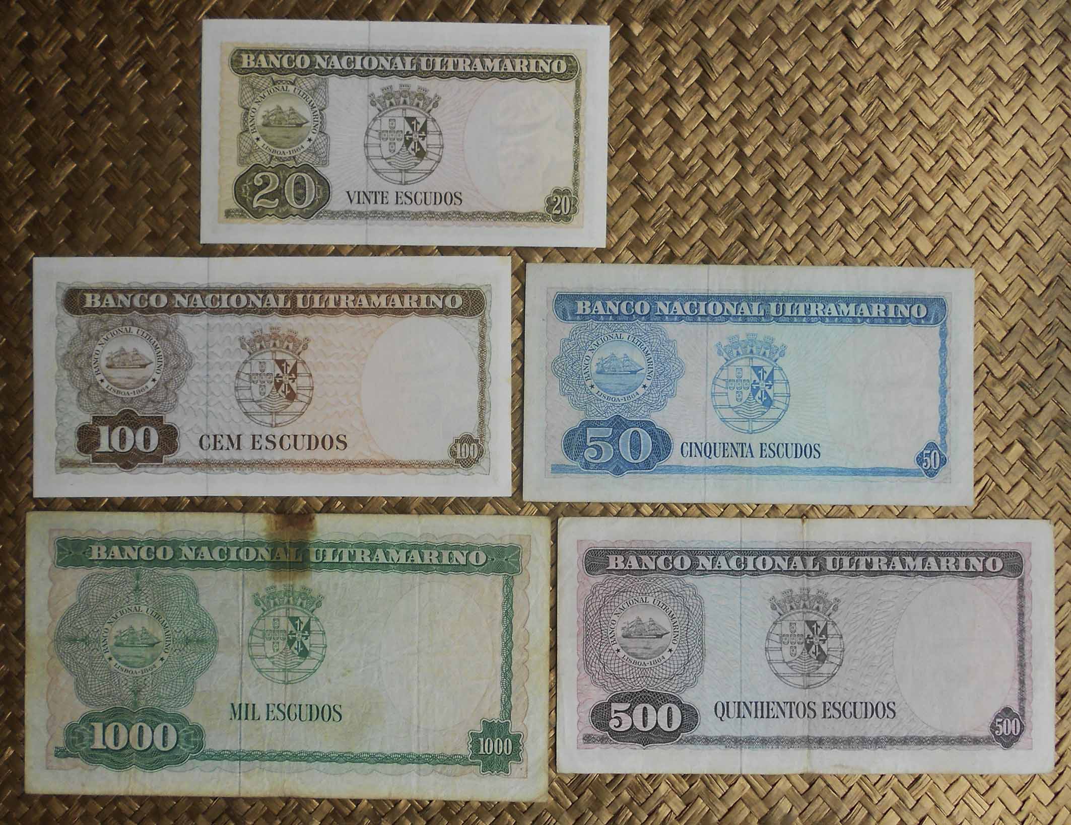 La serie de escudos de 1962 mantiene los grabados de las viñetas de los anversos de la serie anterior, pero sustituye a los diferentes personajes de cada valor por Américo Tomás (1894-1987), el que fuera decimotercer Presidente de Portugal, entre 1958 y 1974, después de haber sido Ministro de Marina entre 1944 y 1958. Los números de serie se mantienen en tipografía negra pero pasan a colocarse en diagonal en los anversos, arriba a la izquierda y abajo a la derecha. También sus tonalidades, cuasimonocromáticas, varían. Llevan dos firmas de validación, aunque no son comunes para todos los valores; las firmas de Carlos João Silva Moreira Rato (20, 50, 100 y 500 esc.) como O Governador y de Ruy de Lima Pereira de Mello (20 esc.), Antonio Carnacho Teixeira de Sousa (50 esc.), Henrique Belford Corrêa da Silva (100 esc.) o Fernando Correia Pessoa (500 esc.) como O Administrador. El ejemplar de 1.000 escudos de 1970 lleva las firmas de Mario Angelo Morais Oliveira como O Governador y de Nuno Alves Morgado como O Vicegovernador.