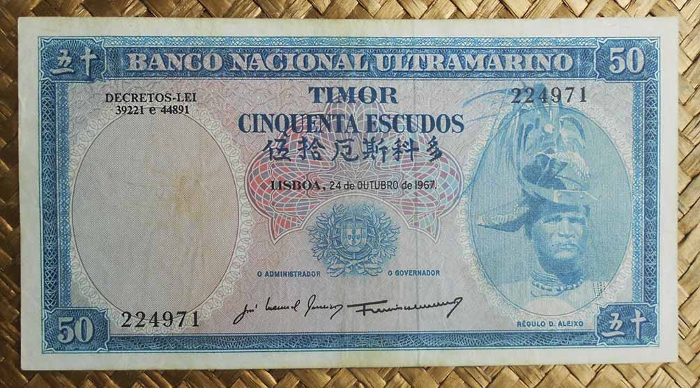 El billete de 50 escudos de Angola de 1962 repite viñetas cambiando únicamente al personaje del anverso (sustituye a Henrique de Carvalho por Américo Tomás). La tonalidad predominante de los grabados cambia a azulado y gris. También se actualiza la fecha de emisión.
