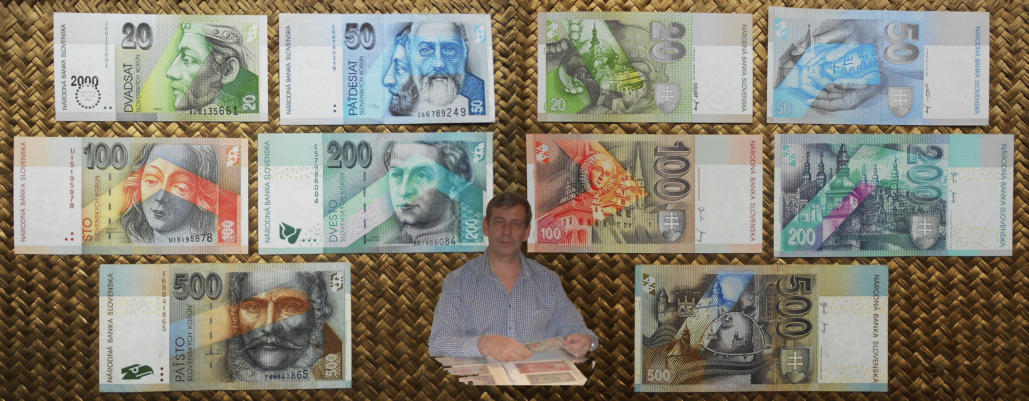 Contemplaremos los ejemplares en coronas que emitieron nada más desaparecer Checoslovaquia como tal en la década de los ’90 del pasado siglo. Os mostraré los billetes de 20, 50, 100, 200 y 500 coronas (korun). Una serie realmente bonita, que nada tiene que envidiar a su coetánea checa (repasad post anterior) y que también nos ofrece grabados representativos de personajes históricos e ilustres relacionados con el país y edificaciones mayoritariamente religiosas de su geografía.