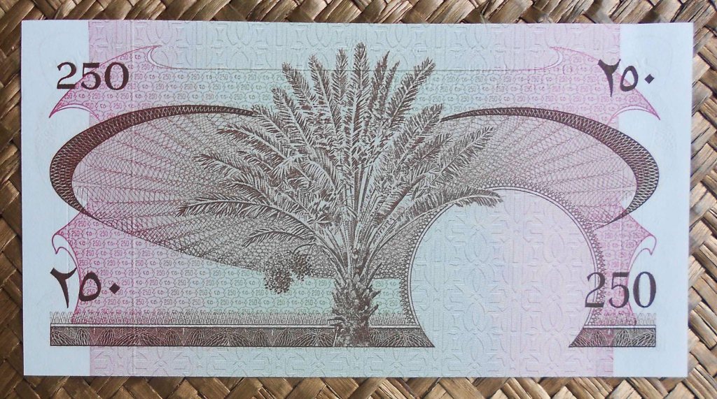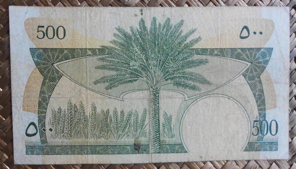 El billete de ½ dinar de 1973 es fiel reflejo del anterior, mostrando los mismos grabados y coloraciones. Únicamente actualiza la divisa del billete, pasando de fils (centésimos de dírham) a dinares.
