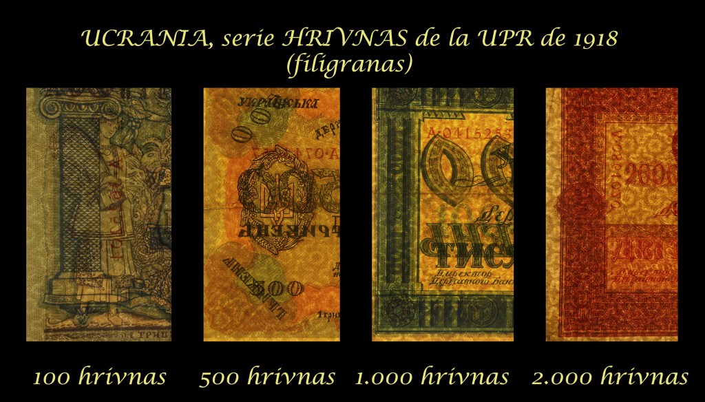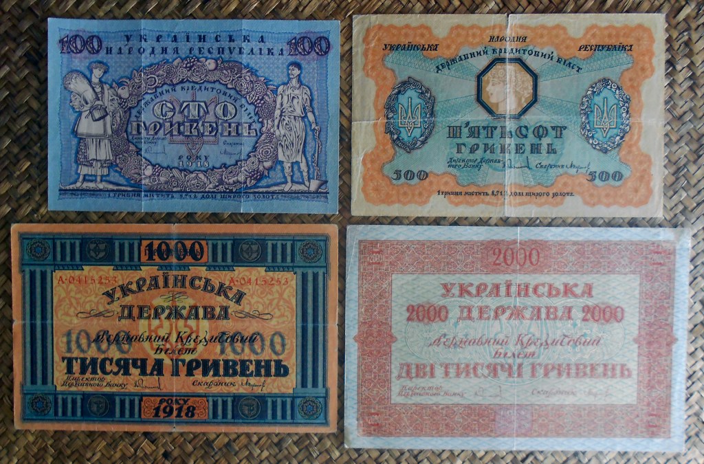 Desde “Miscelánea” nos acercamos a Ucrania, en el centro oriental europeo, para revisar la primera serie de grivnas (hryvnias) de la República Popular Ucraniana (UPR) de 1918. Contemplamos los ejemplares emitidos por el Crédito Estatal de la UPR de 100 grivnas, 500 grivnas, 1.000 grivnas y 2.000 grivnas.