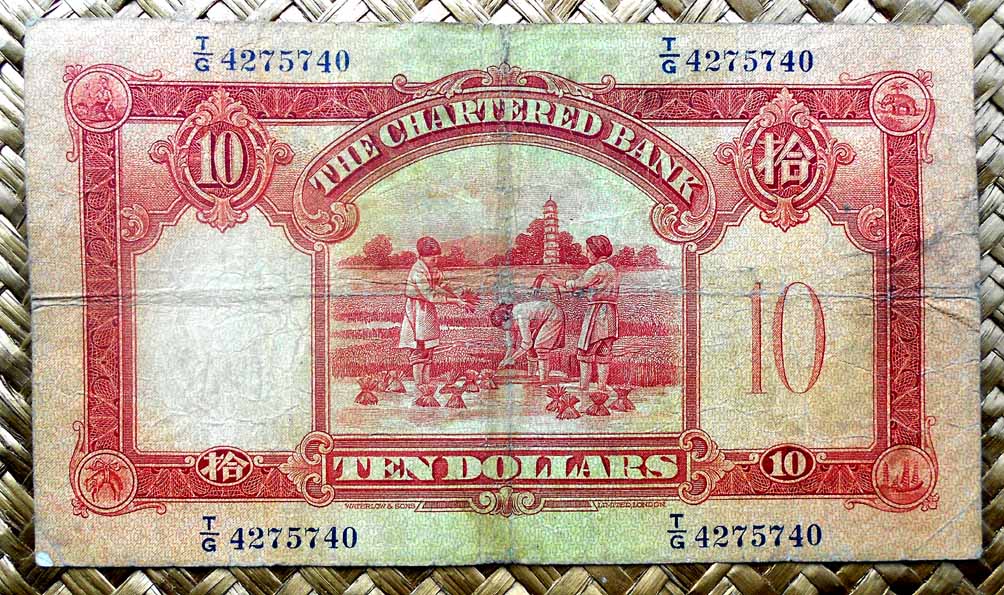 Sus reversos nos ofrecen el edificio del Banco en su sede de Hong Kong. El edificio del HSBC, o Hong Kong & Shangai Bank Building, que vemos en los ejemplares de 1983 data de 1935 y fue la tercera sede del Banco en la capital hongkonesa. De estilo arquitectónico entre clasicista sobrio y art-decó y con una altura de 70m y 13 plantas era el edificio más alto de la ciudad en esa época.