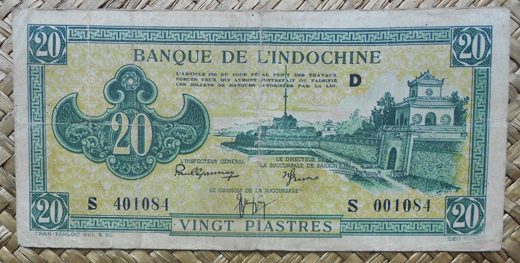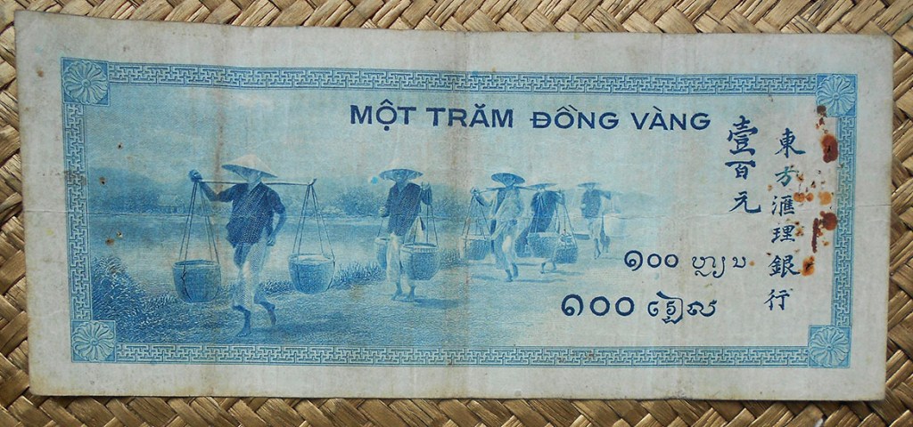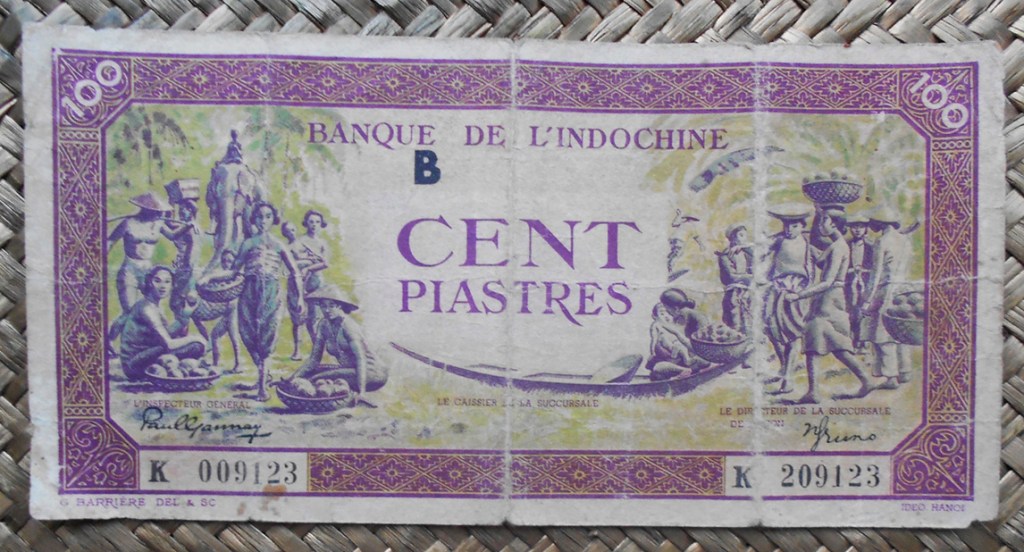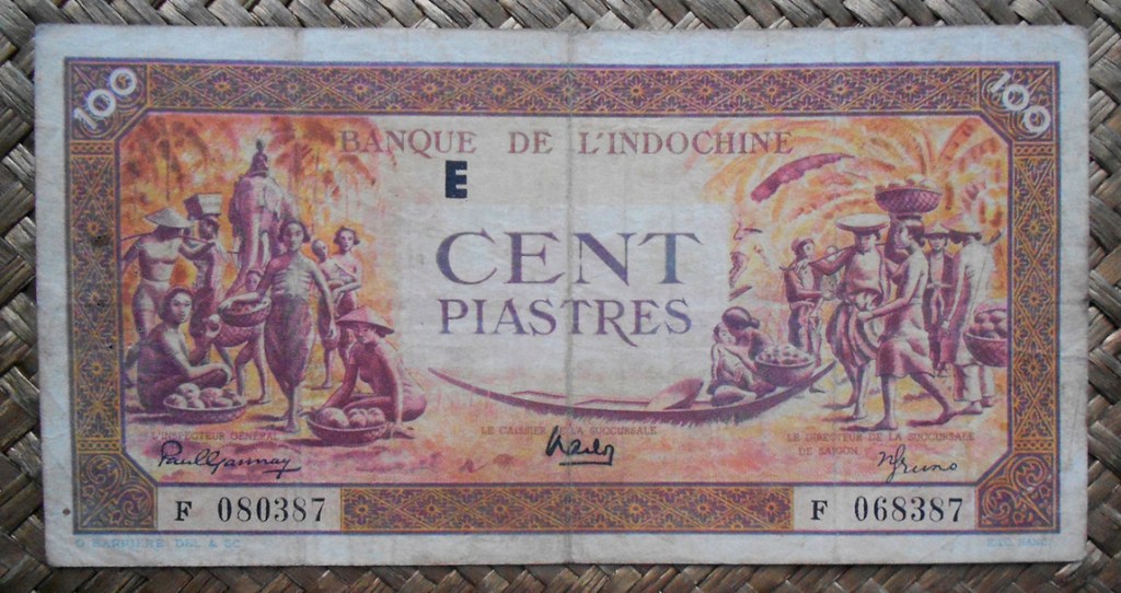 Desde “Semejanzas” nos acercamos a la Indochina francesa, un territorio colonial que en la primera mitad del s. XX gozó de artísticas emisiones de billetario repartido por sus llamados Territorios de Ultramar. Bajo la titularidad del Banque de l’Indochine sus colonias de África, de Asia o de Oceanía compartieron diseños muy semejantes, aún validando monedas muy distintas.