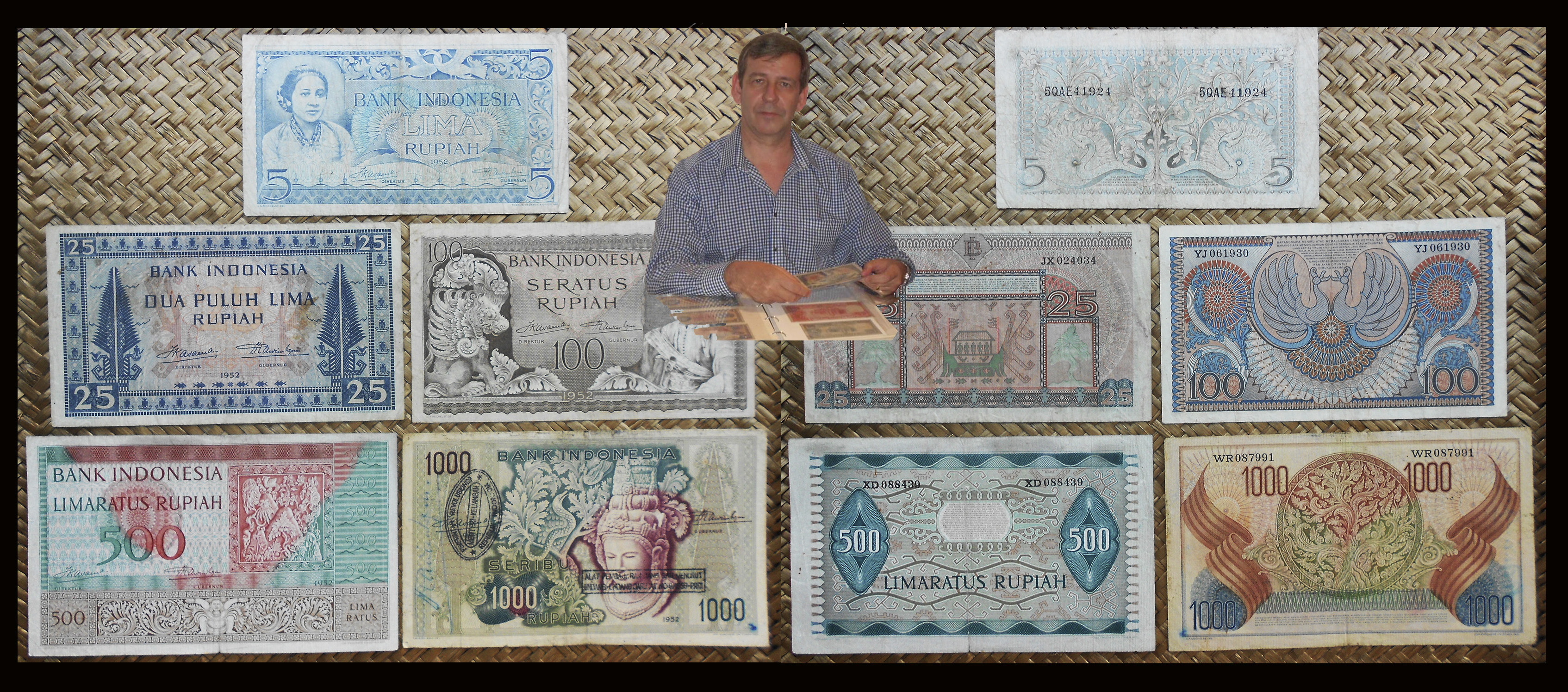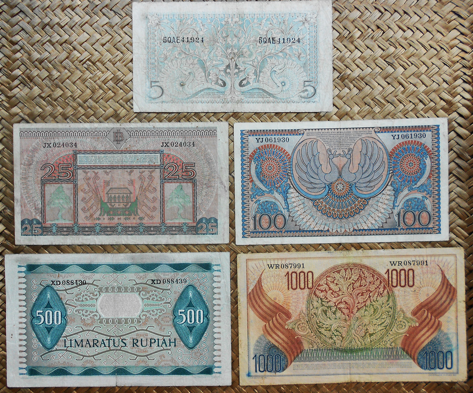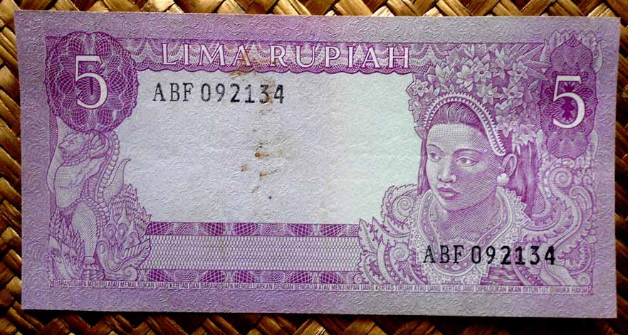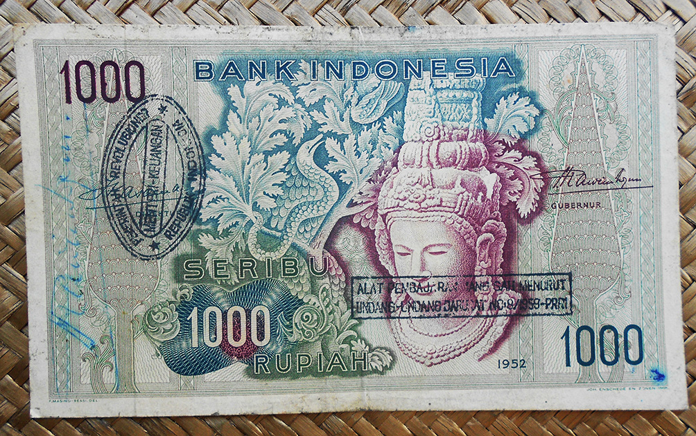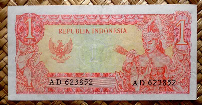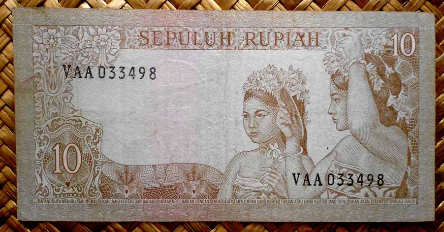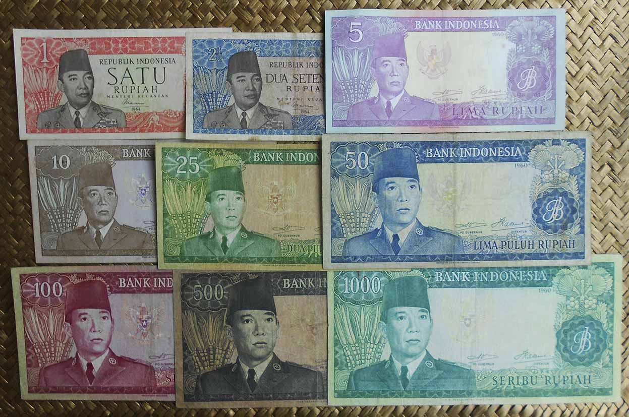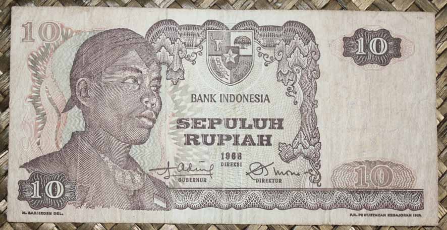 El Bank Indonesia obtuvo el derecho a emitir billetes y monedas con carácter exclusivo en 1968. La serie consta de 11 valores entre 1 rupia y 10.000 rupias, emitidos en 1968 (de 1 a 1.000 rp) y en 1970 (los de 5.000 y 10.000 rp). Fueron impresos por la imprenta estatal PN Pertjetakan Kebajoran de Yakarta. Llevan las firmas de Radius Prawiro y Soeksmono B. Martokoesoemo como Gubernur y Direktur respectivamente. Textos en indonesio.