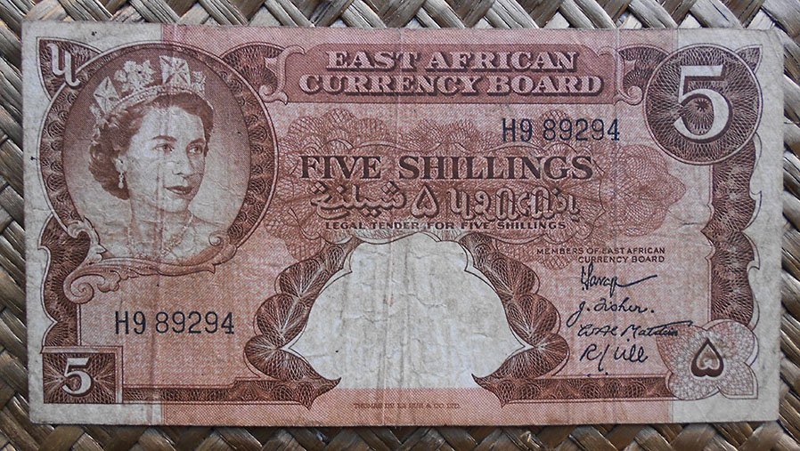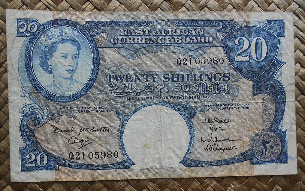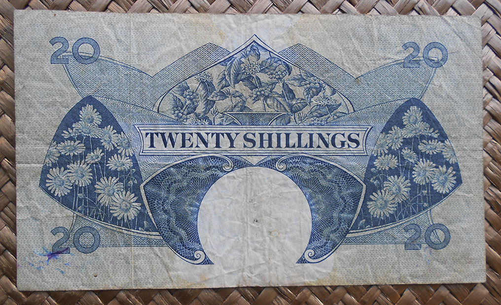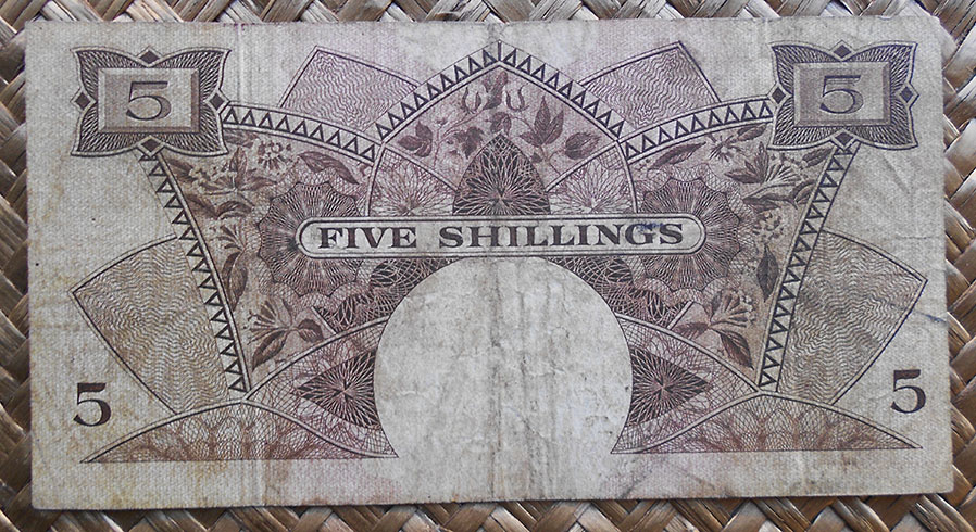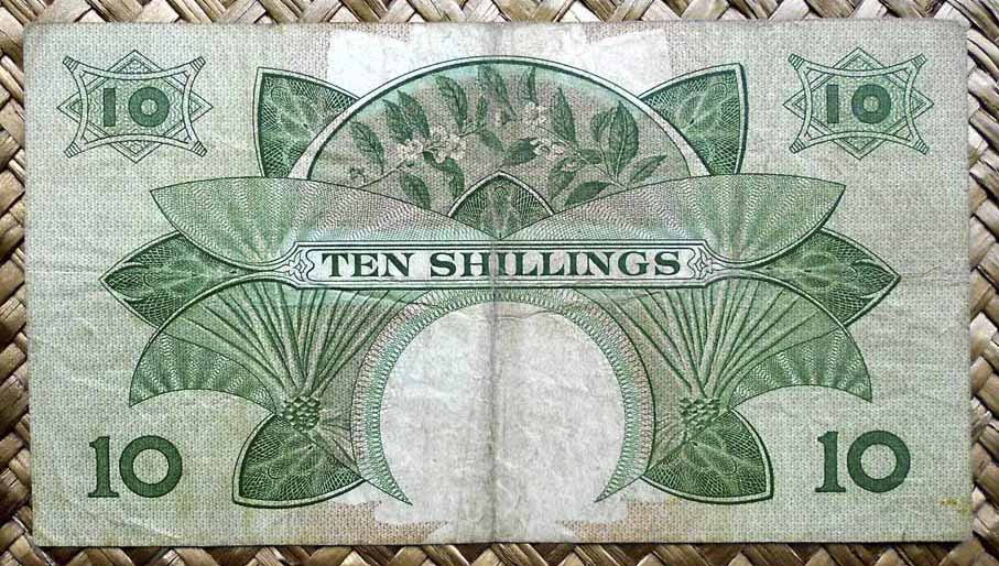 Concretamente, los billetes de 10 sh. y 1 £ nos muestran el retrato de Isabel II, obra del artista Robert Austin, extraido de una foto de Dorothy Wilding de 1956. El grabador de la empresa Bradbury Wilkinson and Company que lo plasmó en los billetes fue R. Godbehear.