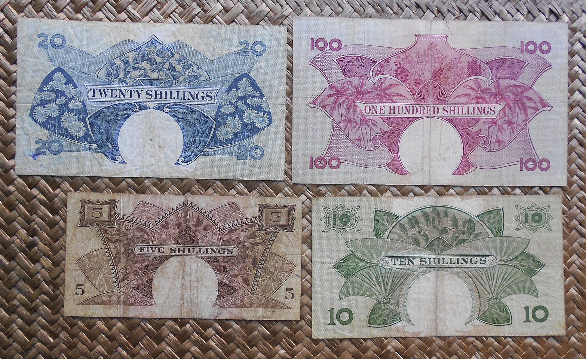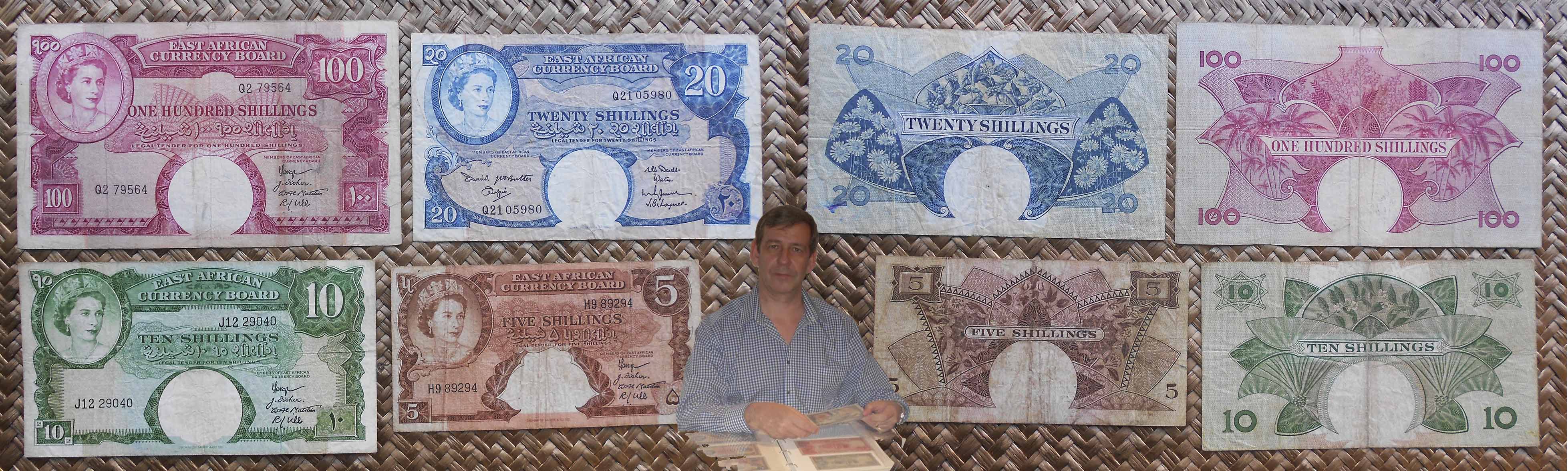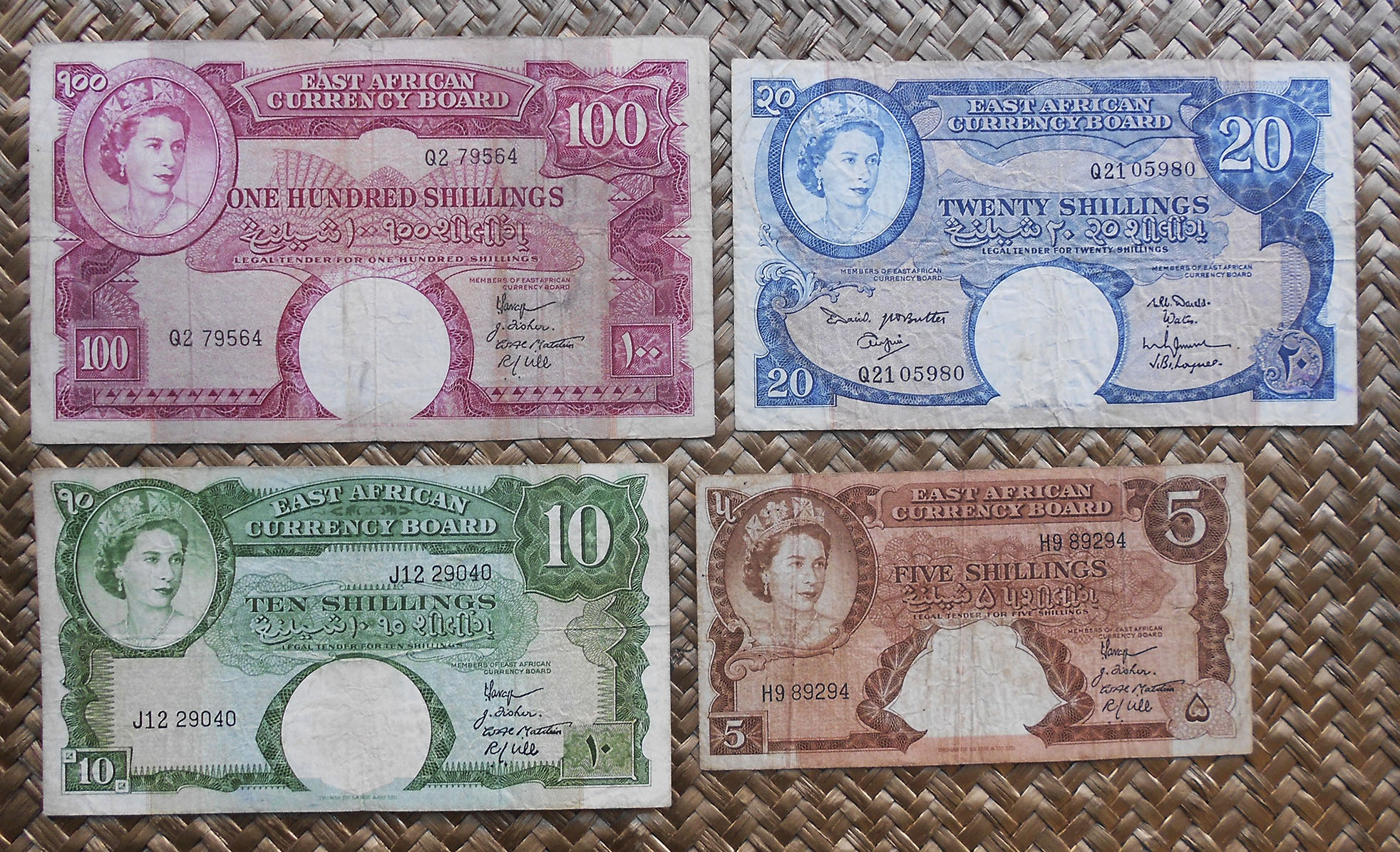 Concretamente, los billetes de 10 sh. y 1 £ nos muestran el retrato de Isabel II, obra del artista Robert Austin, extraido de una foto de Dorothy Wilding de 1956. El grabador de la empresa Bradbury Wilkinson and Company que lo plasmó en los billetes fue R. Godbehear.