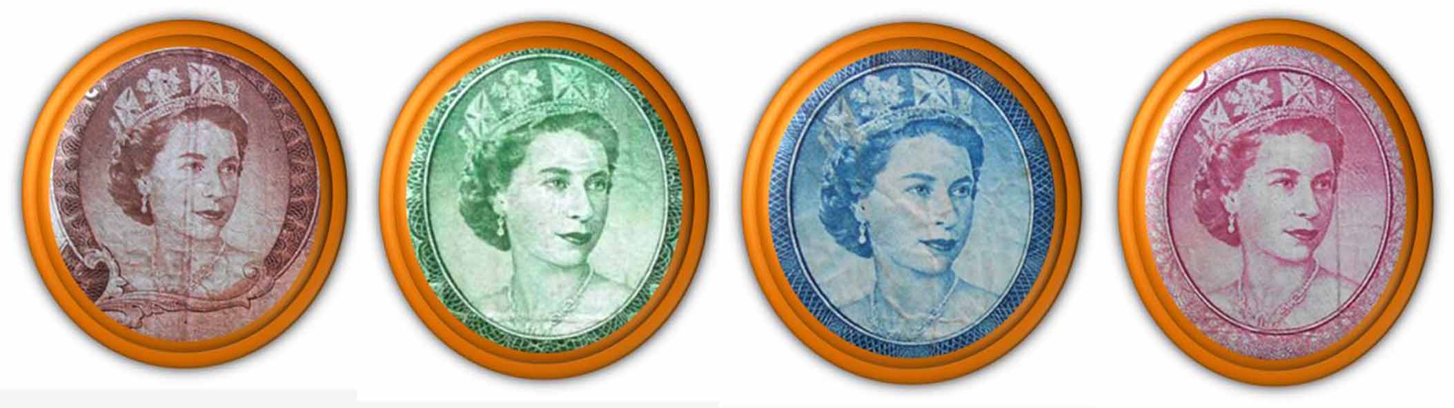 Se muestran dos de los muchos retratos de la monarca británica que pasaron a formar parte del billetario mundial.