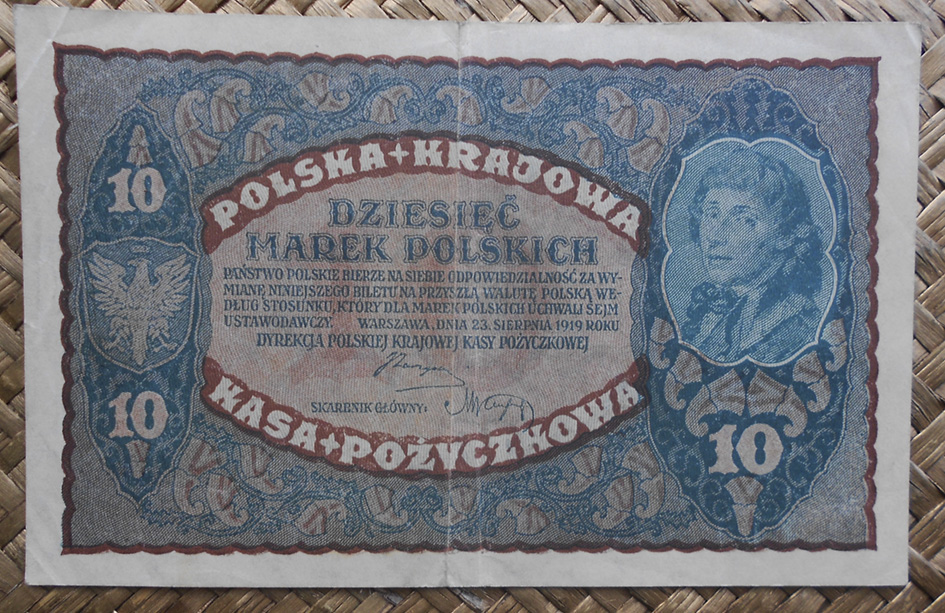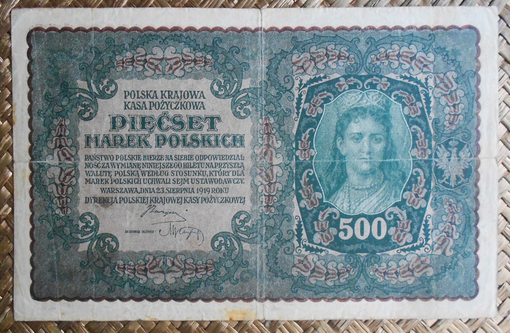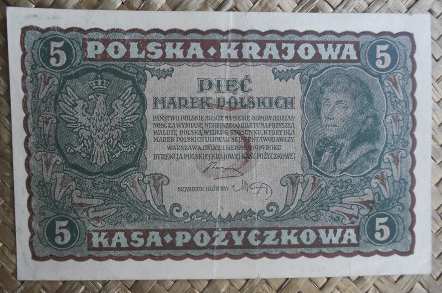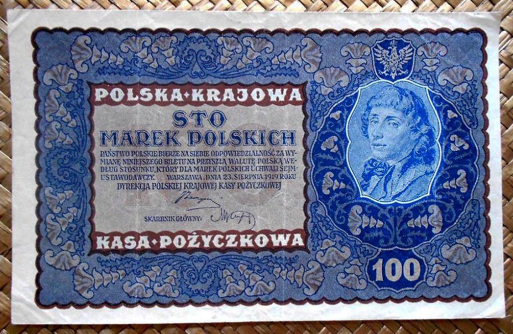 Veremos a Tadeusz Kosciuszko en los valores de ½ marka de 1920, 5 marek de 1919, 10 marek de 1919, 100 marek de 1919 y 1000 marek de 1919. Veremos al rey Jadwiga en los valores de 1 marka de 1919, 20 marek de 1919 y 500 marek de 1919.