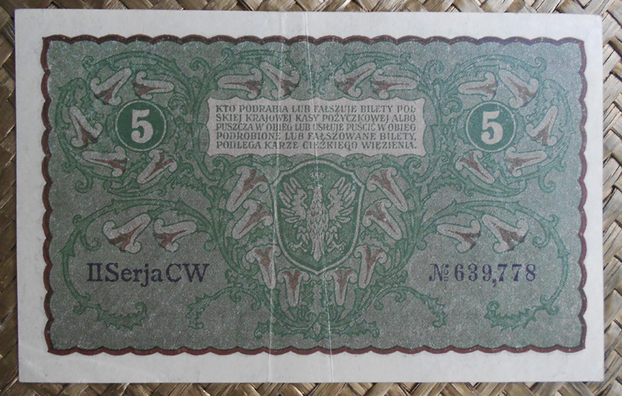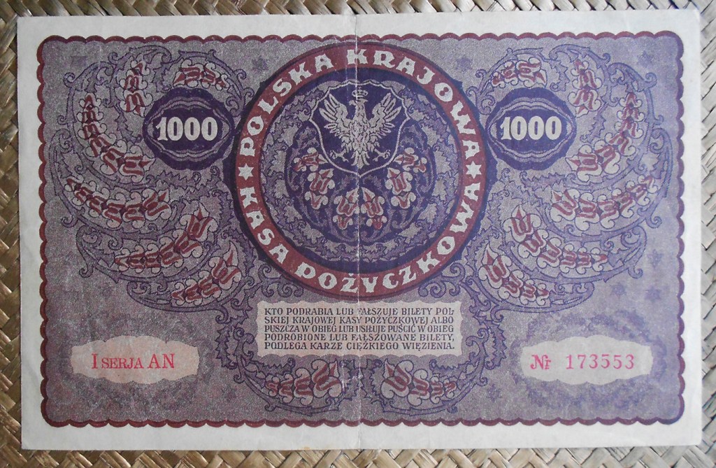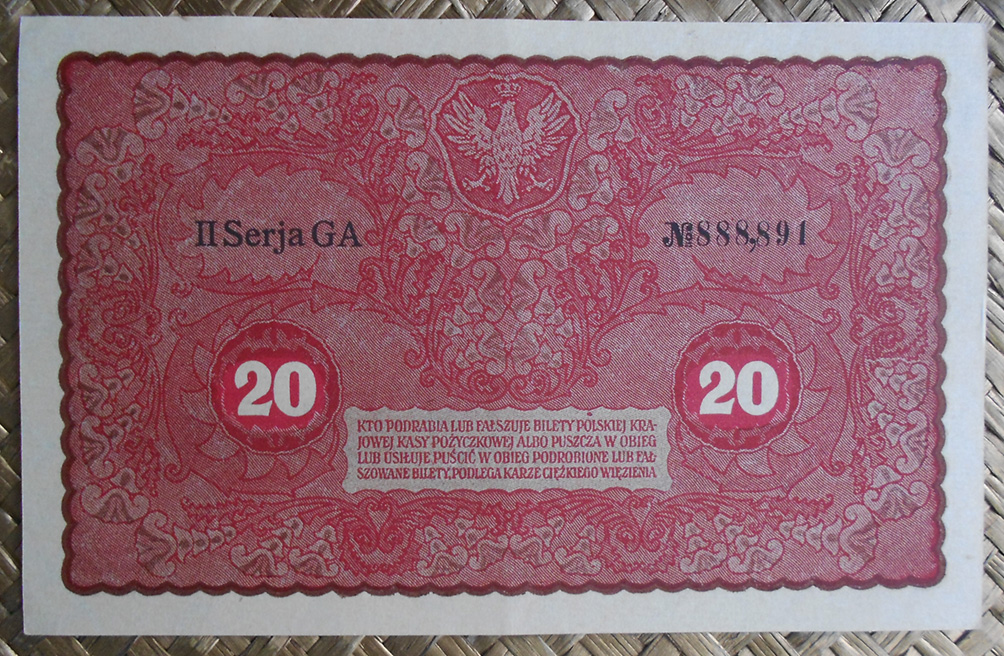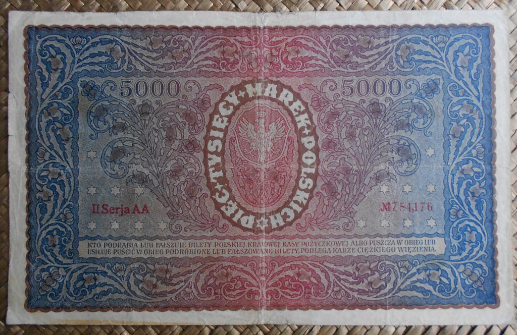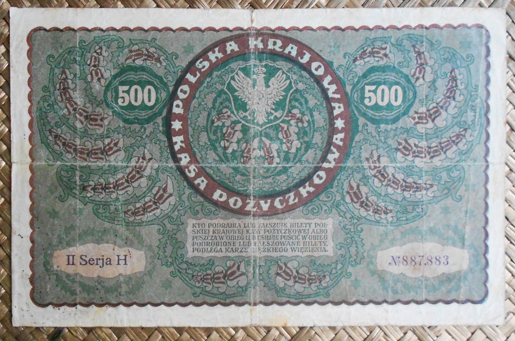 La serie de billetes que vamos a revisar repasan la tercera emisión como república independiente tras finalizar la 1ª Guerra Mundial. Contemplaremos los billetes de 1, 5, 10, 20, 100, 500 y 1000 marek de Polonia de 1919 y los billetes de ½ marka y 5000 marek de Polonia de 1920.