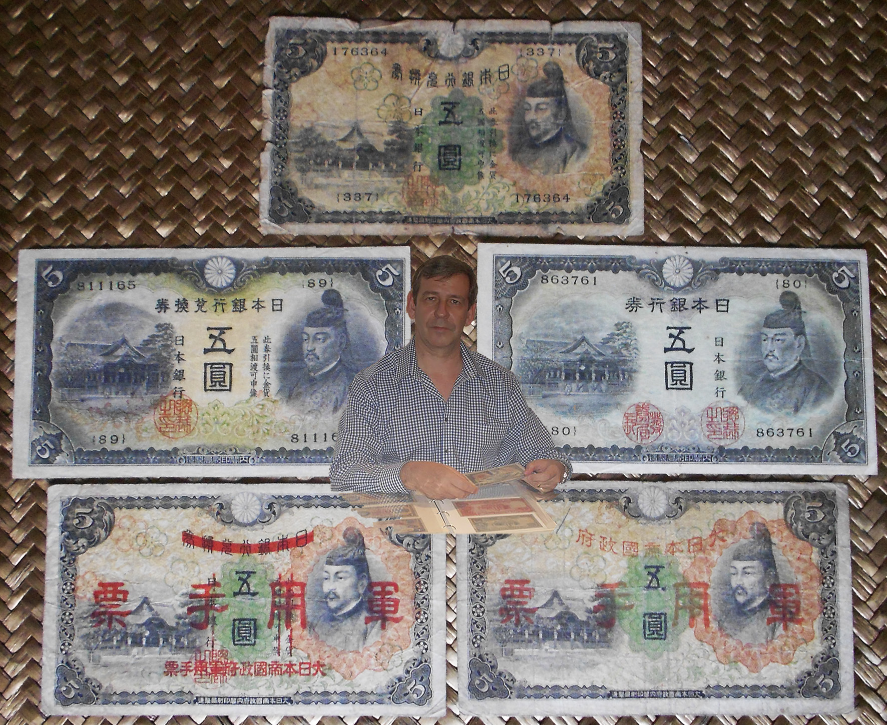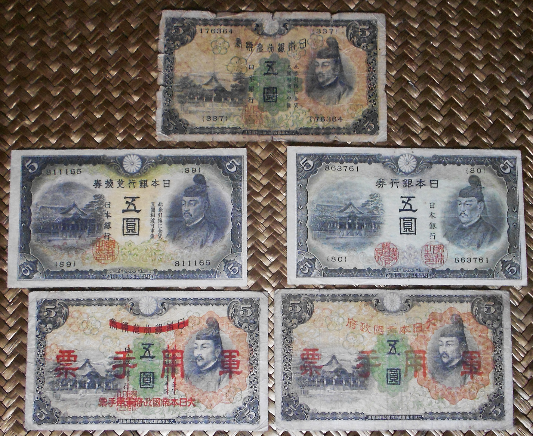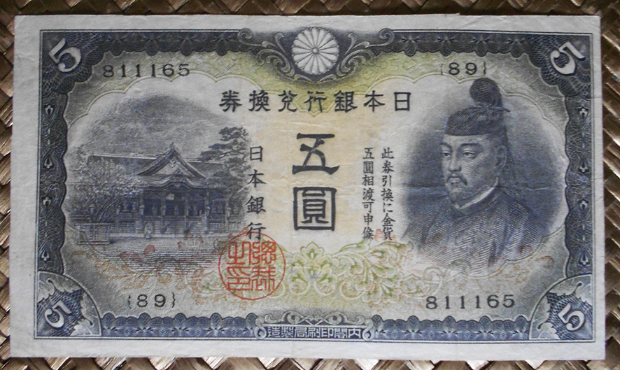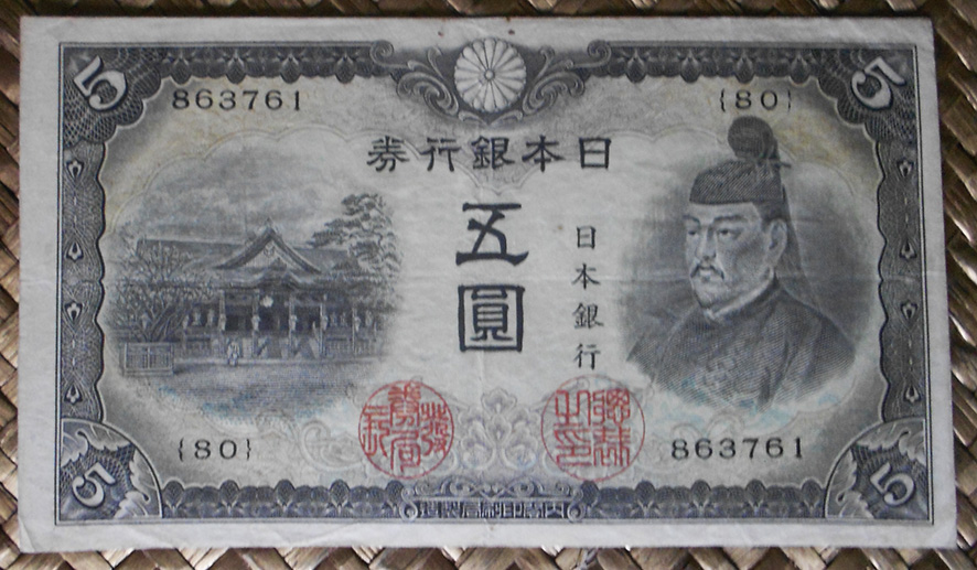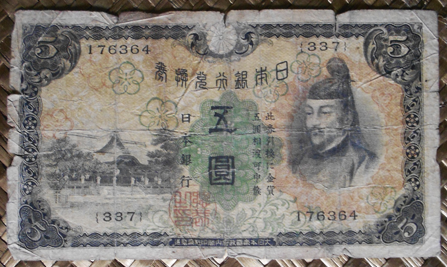 Contemplaremos los ejemplares de 1.000 yen de Japón de 1950, de 5.000 yen de 1957 y de 10.000 yen de 1958. Todos ellos comparten al mismo personaje presidiendo en el lado derecho o el centro de sus anversos. Es Shotoku Taishi, regente de la Corte Imperial de Japón de inicios del s.VII.