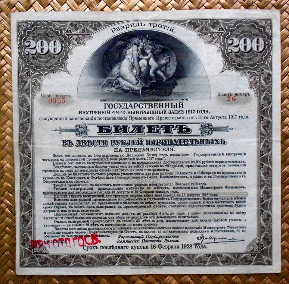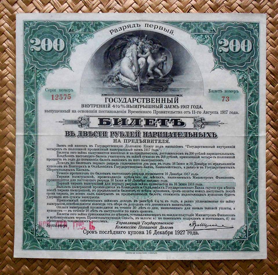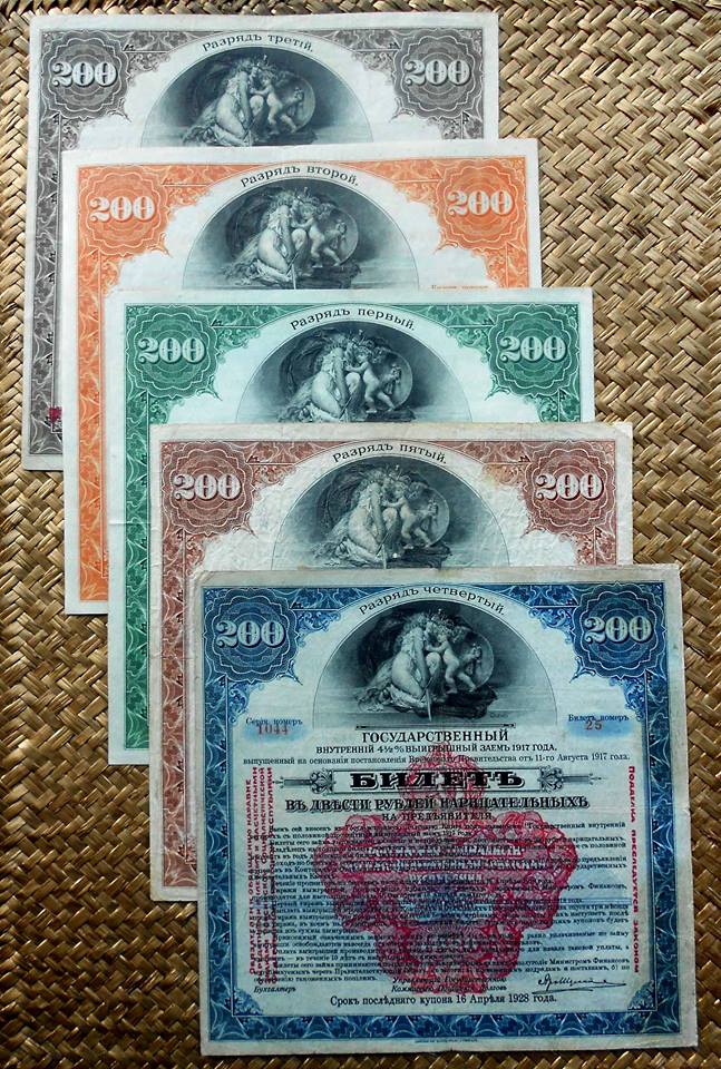 Considerados como los bonos de Préstamo del nuevo Gobierno Provisional, se emitieron en un único valor de 200 rublos en coloraciones verde, naranja, marrón, azul y granate.