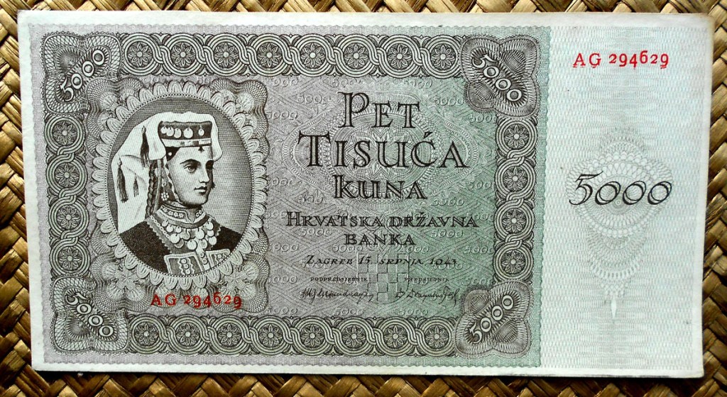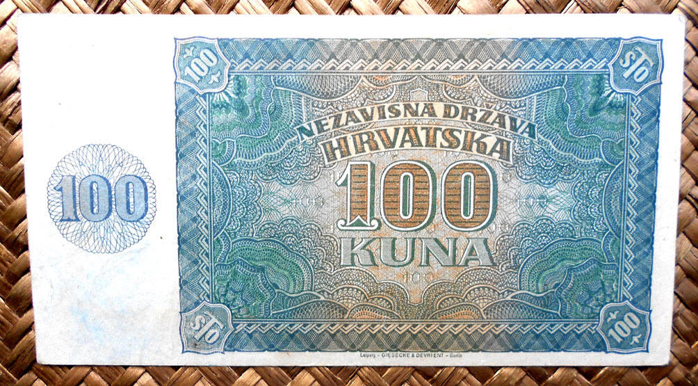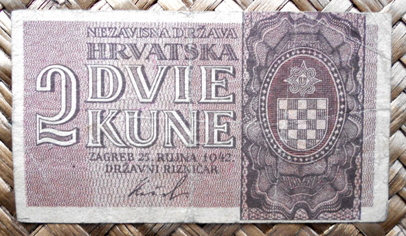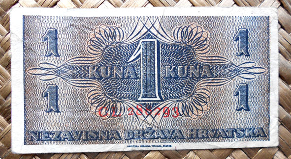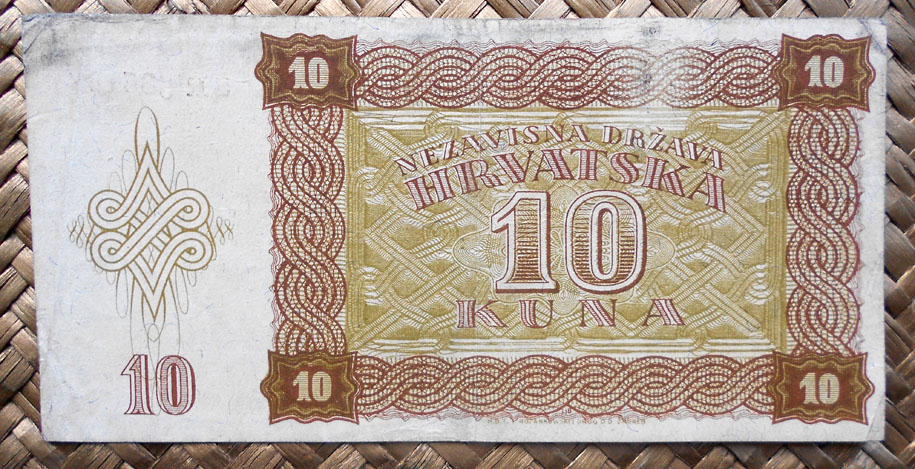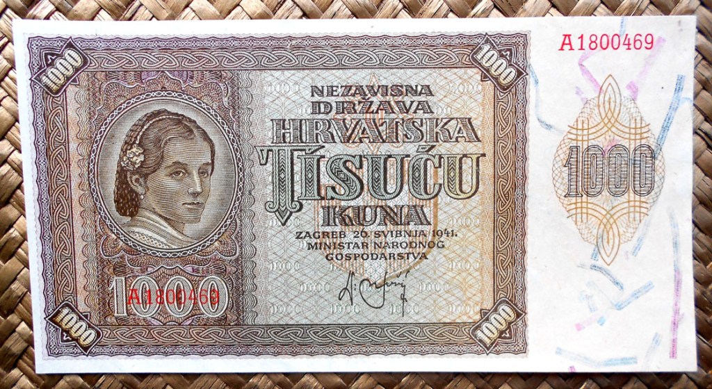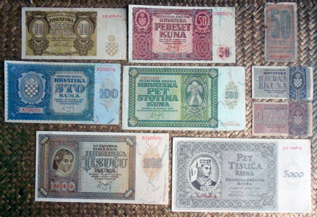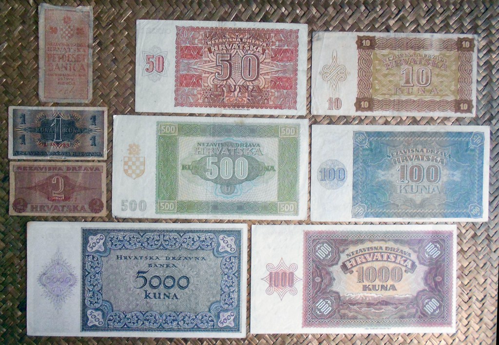 El Nezaviska Drzava Hrvatska introdujo en 1941 una primera serie de valores de 10, 50, 100, 500 y 1000 kunas diseñados por Ljubo Babic.