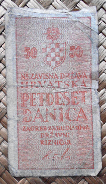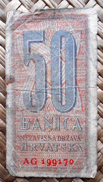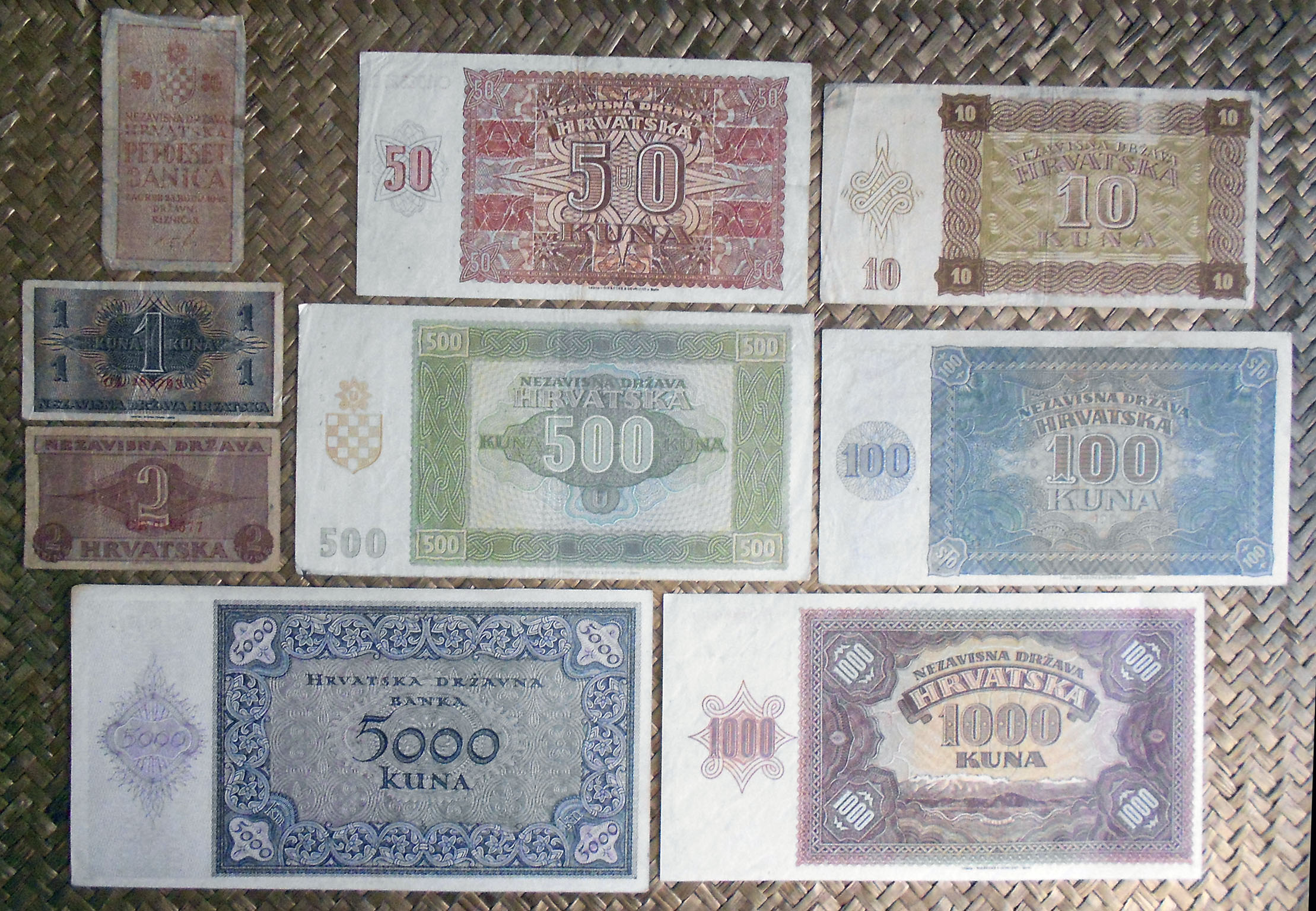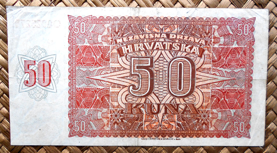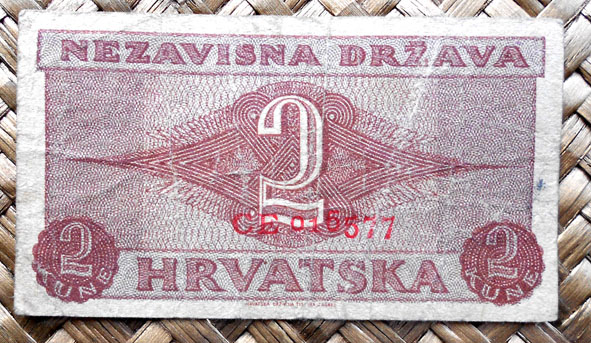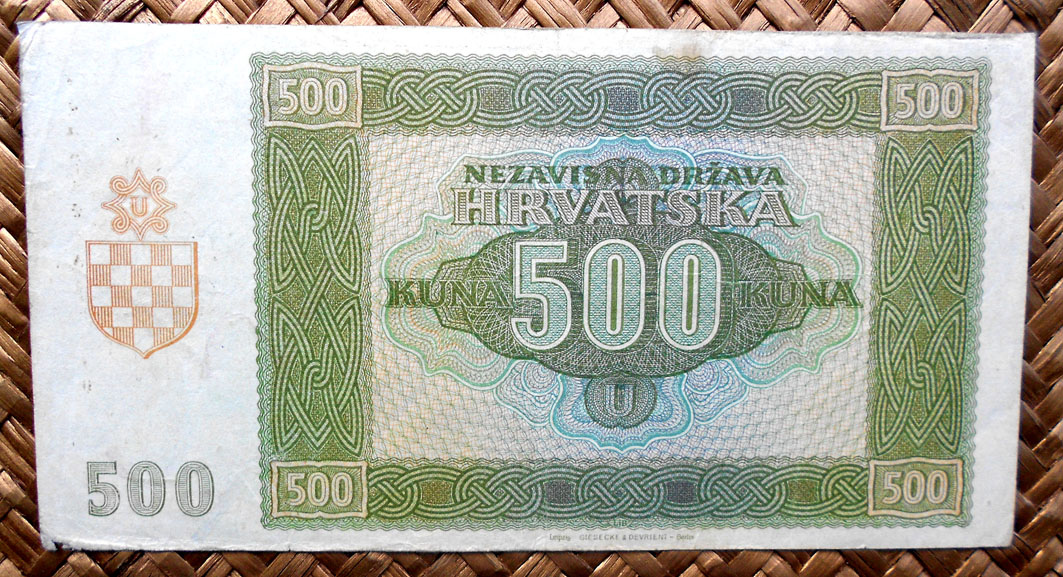 El Nezaviska Drzava Hrvatska introdujo en 1941 una primera serie de valores de 10, 50, 100, 500 y 1000 kunas diseñados por Ljubo Babic.