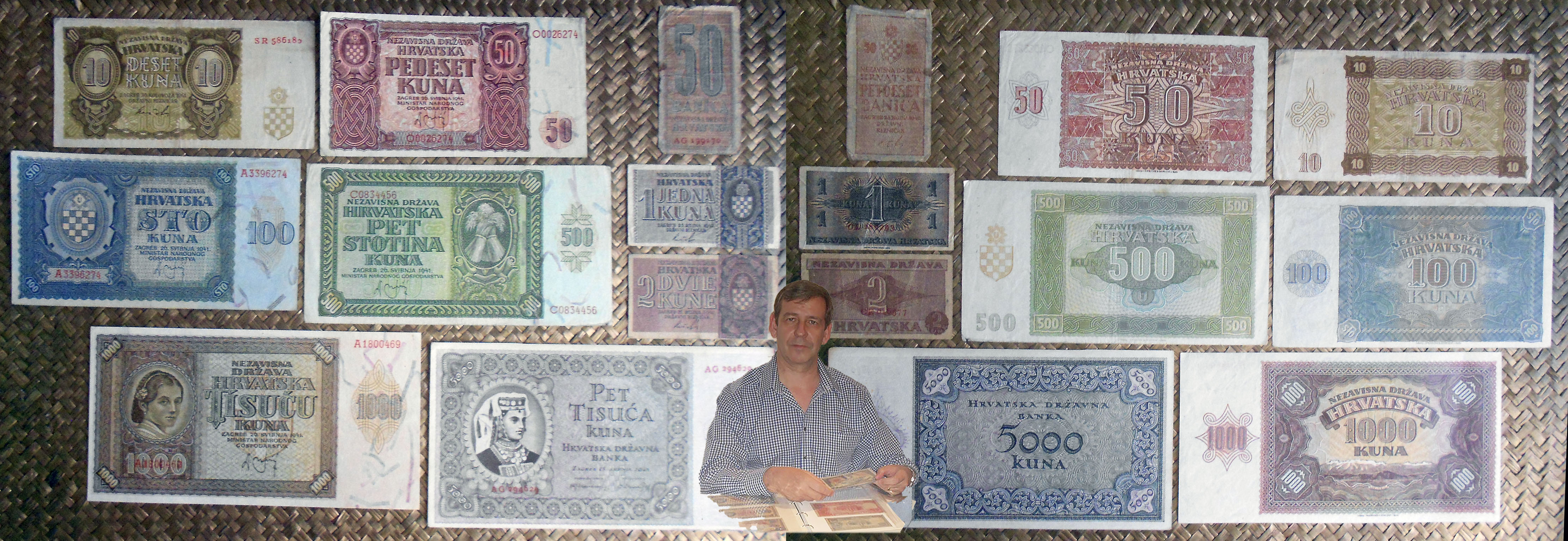 Os muestro los ejemplares de 10, 50, 100, 500 y 1000 kunas de 1941, los ejemplares de 50 banica, 1 y 2 kunas de 1942 y el ejemplar de 5000 kunas de 1943.