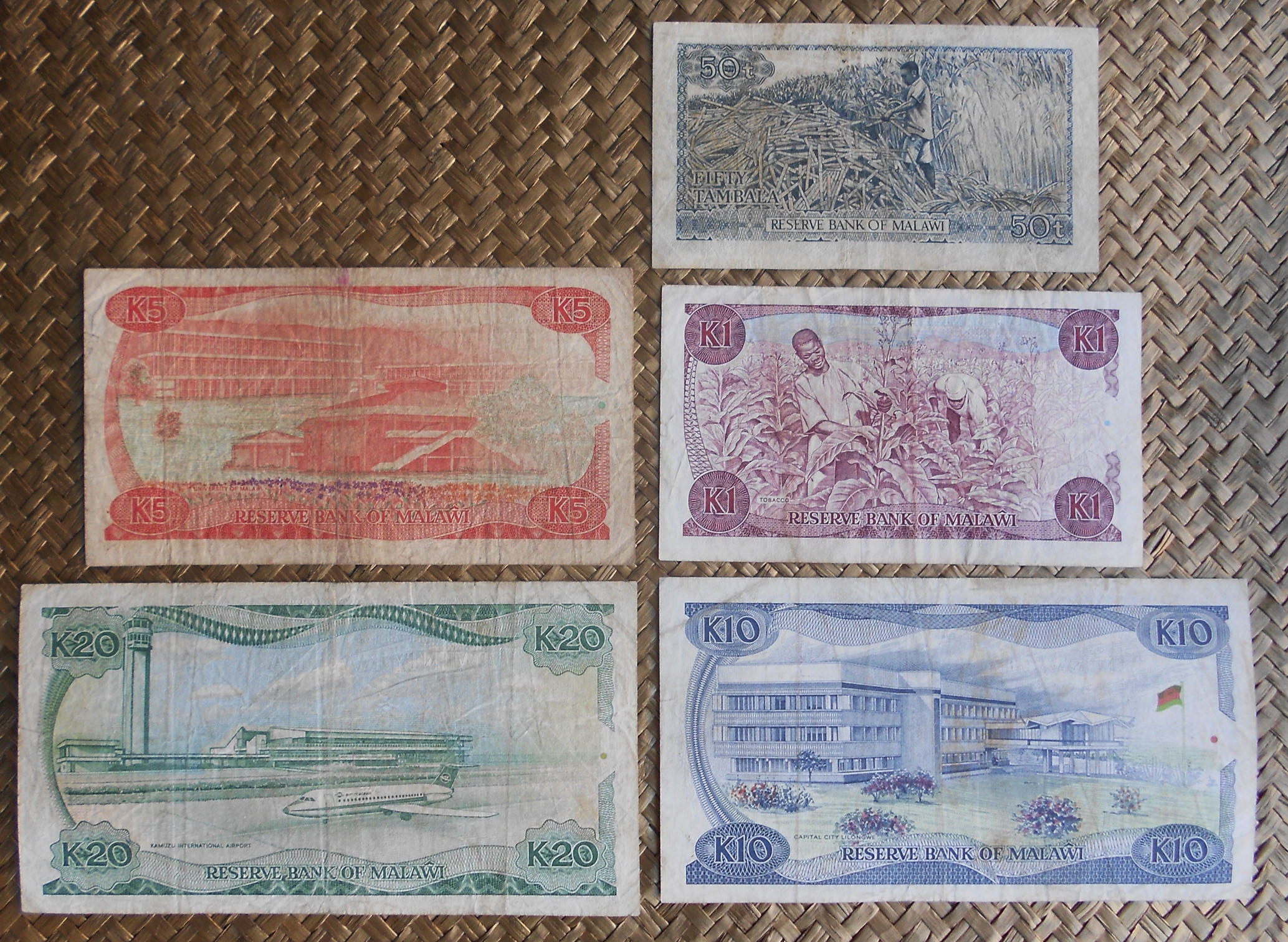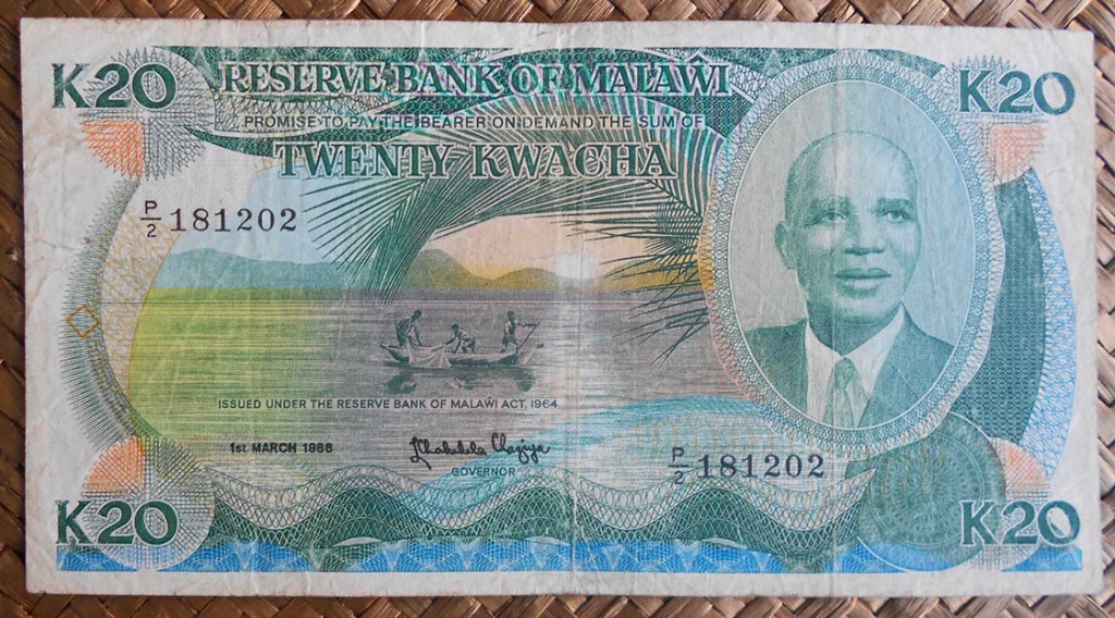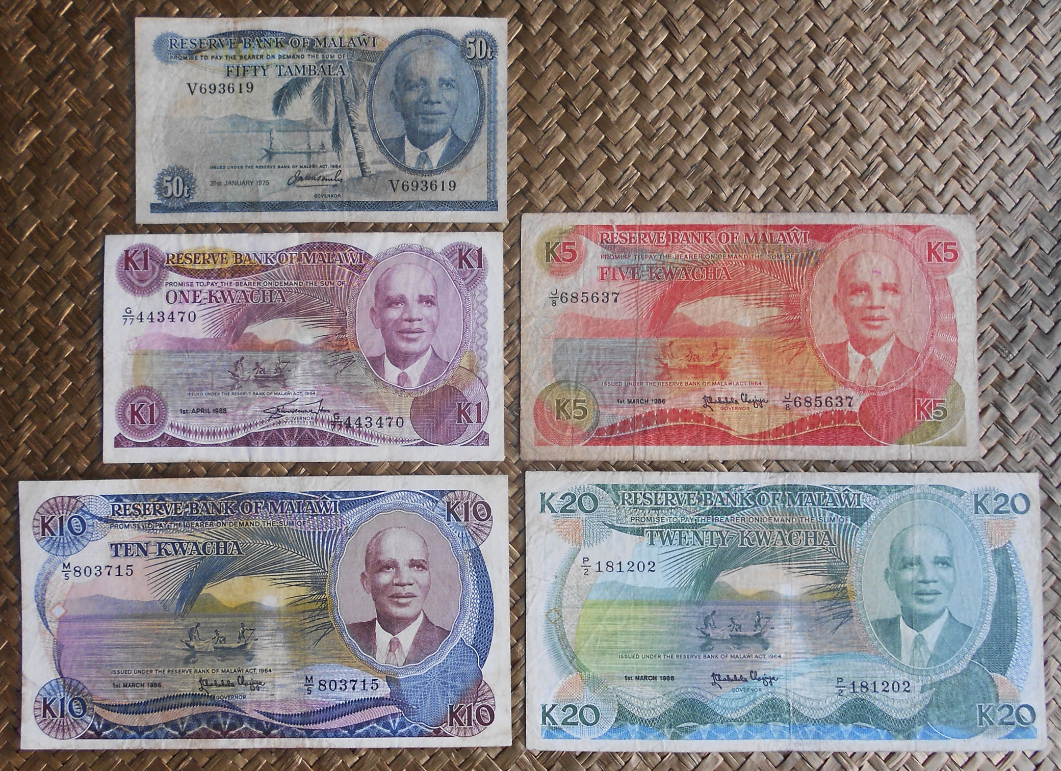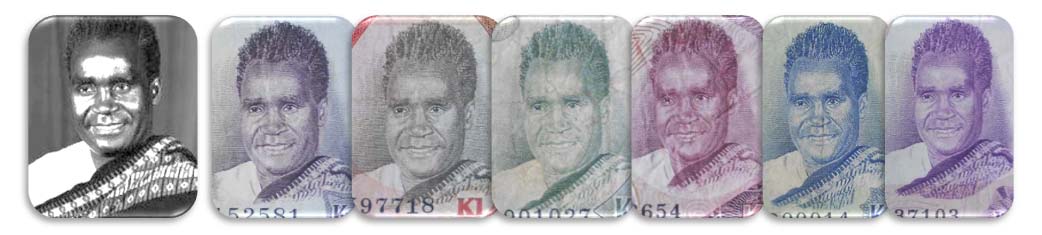 La marca de agua en todos los billetes de valores en kwacha ofrece el rostro ladeado del presidente Kenneth Kaunda.