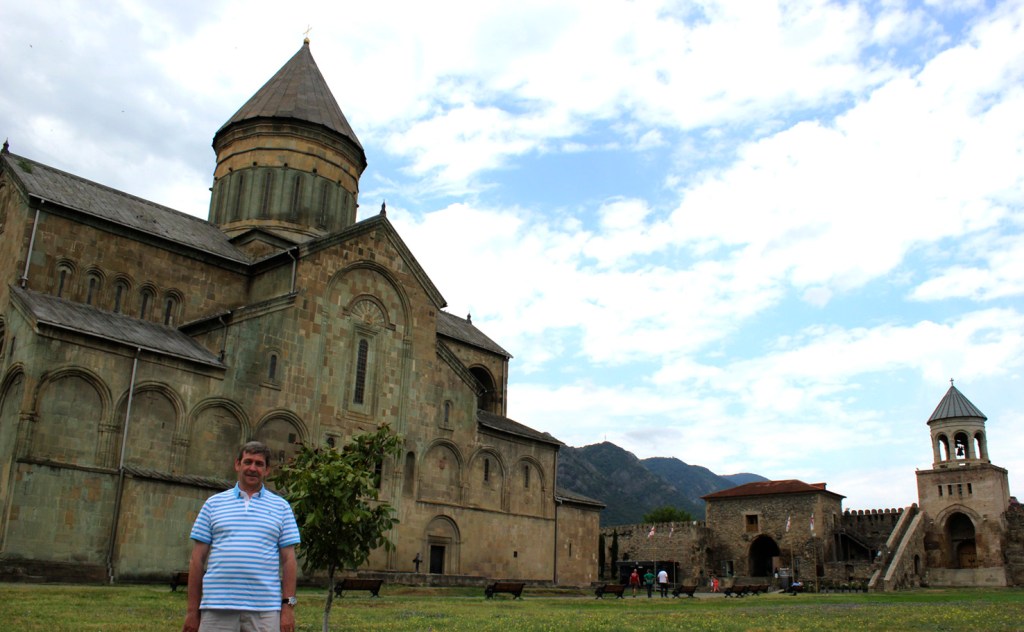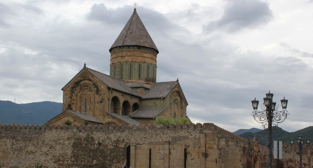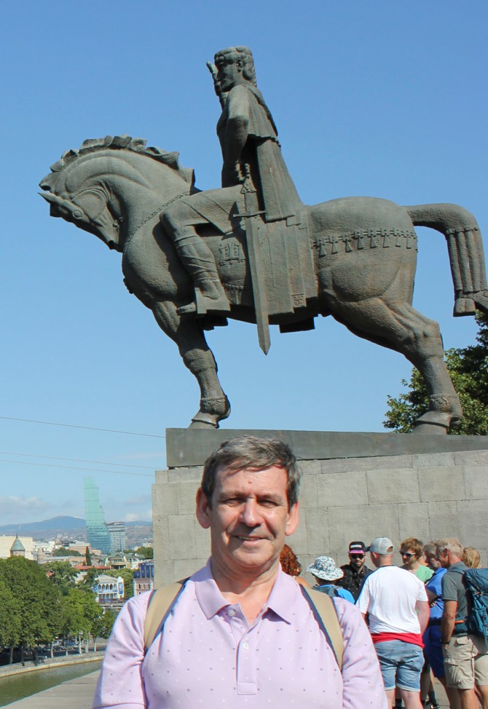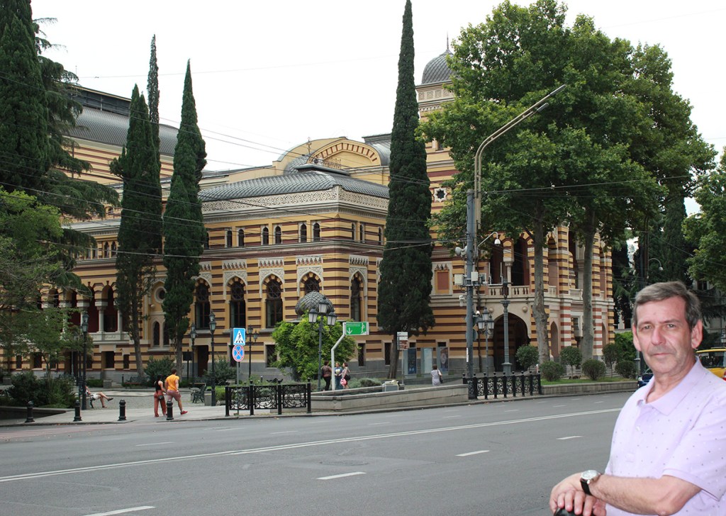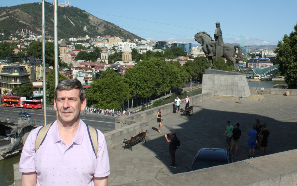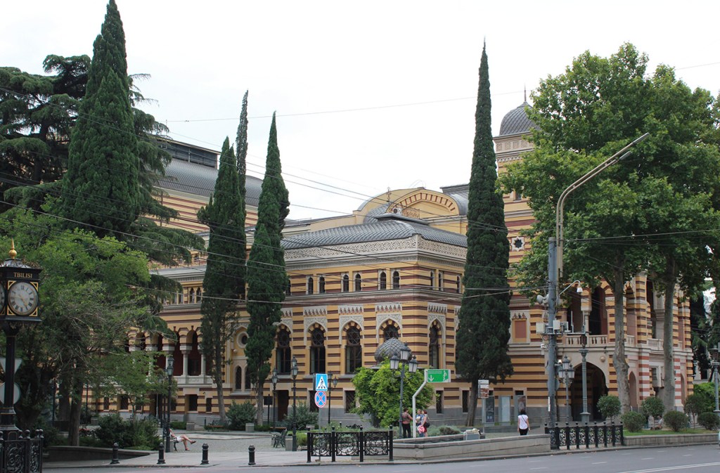 Un paseo por Tbilisi, además de llevarnos junto a Vakhtang Gorgasali en la colina junto a la iglesia armenia Metekhi a orillas del río Mtkvari, nos exige visitar el Teatro Paliashvili o teatro de la Ópera más importante del Cáucaso, la Catedral de la Santísima Trinidad (la más grande del mundo cristiano ortodoxo), pasear por las callejuelas del Old Tbilisi con sus típicas casas y balcones de madera, sumergirse en los baños termales de azufre y, …subir en teleférico al castillo fortaleza Narikala.