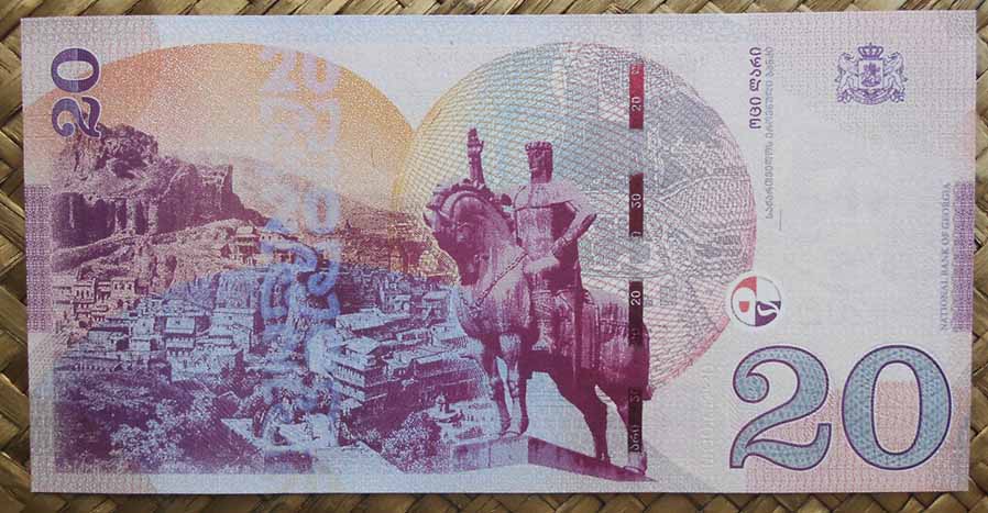 El Banco Nacional de Georgia (საქართველოს ეროვნული ბანკი) decidió imprimir en sus billetes de 20 Lari del s.XXI la imagen del rey Vakhtang I viñeteando una estatua ecuestre que se encuentra en la colina de la capital Tbilisi junto a la iglesia armenia Metekhi, frente a las murallas del castillo.