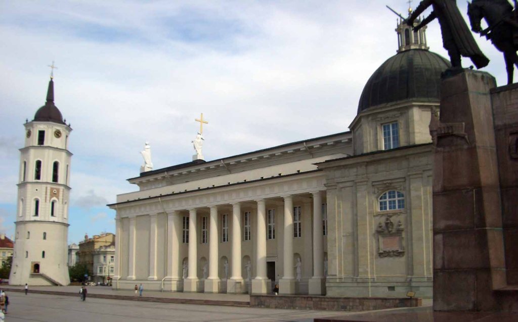 La Catedral, construida en el s. XIII en la fe cristiana sobre un asentamiento pagano, fue reconstruida a finales del s. XVIII con un estilo clasicista barroco francés por el arquitecto Laurynas Stouka-Gucevicius, mediante la recreación de un peculiar templo griego con un pórtico clásico de columnas que lo rodean perimetralmente.