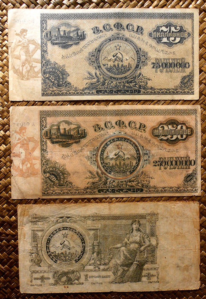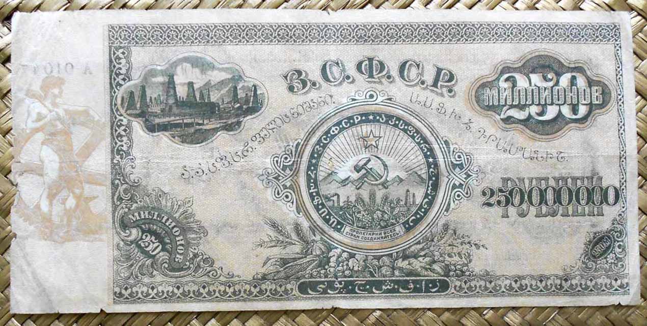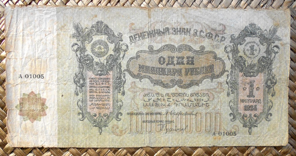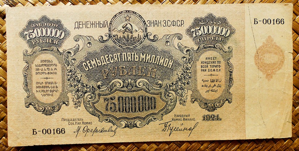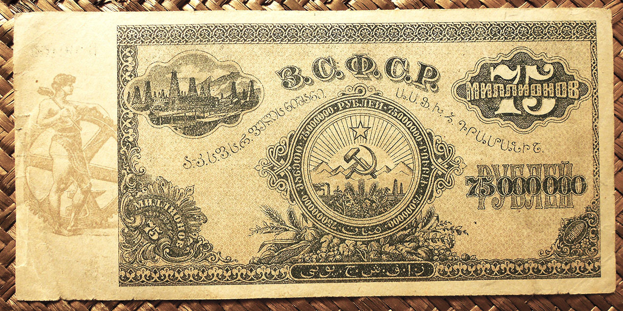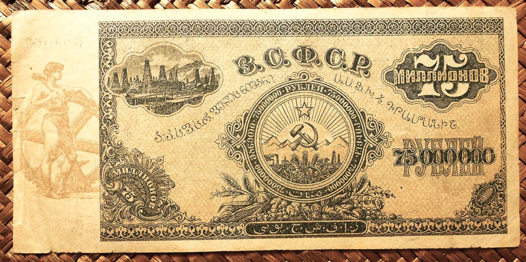 En una publicación anterior repasábamos la magna edición de valores en rublos del billetario transcaucásico posrevolucionario, contemplando cómo la República Socialista Soviética de Transcaucasia emitía valores desde 1000 rublos hasta 100.000.000 rublos en apenas dos años (entre 1923 y 1924), todos de un mismo formato y un mismo diseño en anversos y reversos (repasad publicación de 05/12/2017 https://billetesensuhistoria.wordpress.com/2017/12/05/extraordinaria-serie-de-rublos-de-transcaucasia-de-1923-y-1924/ ).