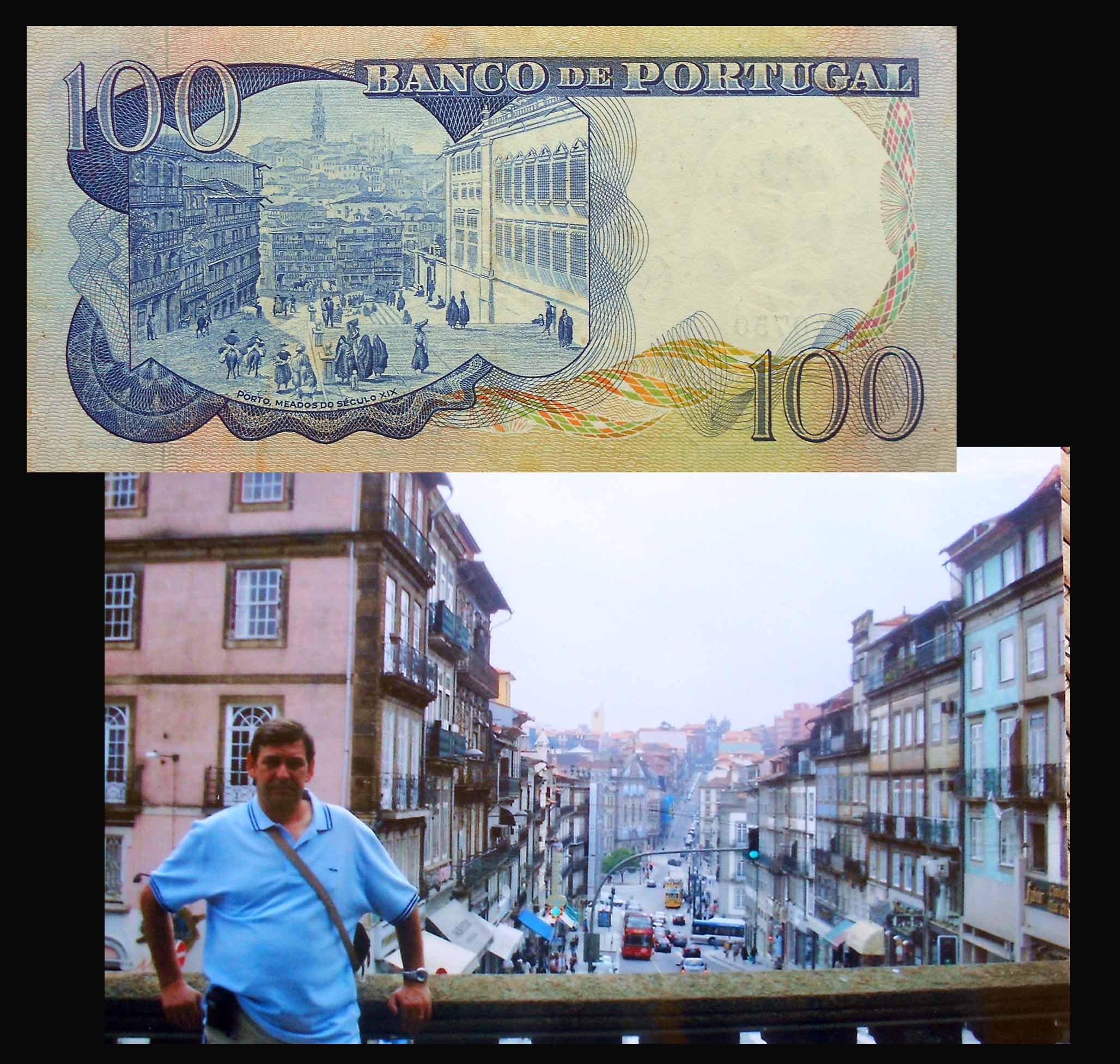 – 100 escudos de Portugal desde la Iglesia de los Clérigos de Oporto