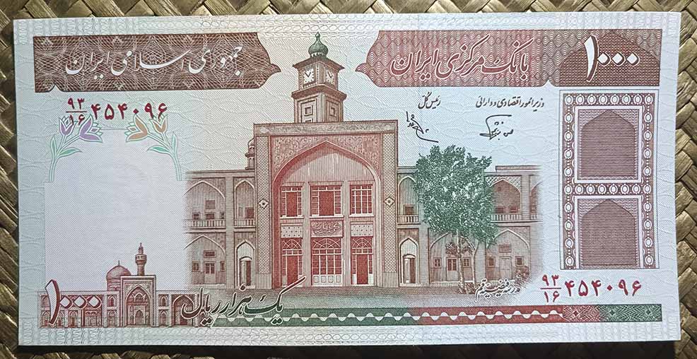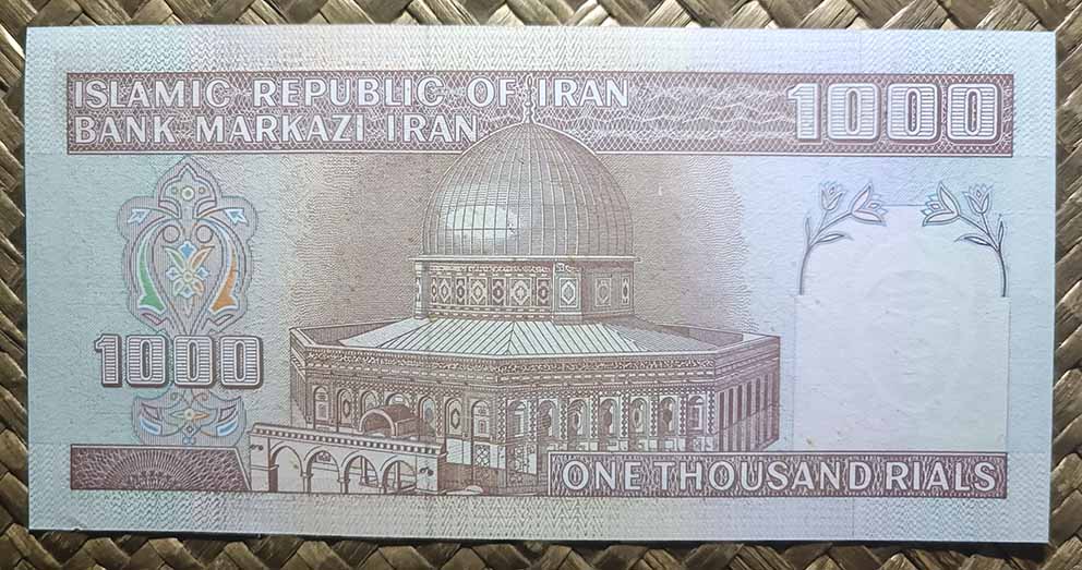 Dos billetes iraníes nos mostrarán en sus reversos la Cúpula de la Roca. En ediciones consecutivas, en 1991 y 1992 la veríamos en sus ejemplares de 1.000 dinares, donde nos muestran el santuario en tonalidad monocromática marrón clara. El billete de 1991 mostraba en su anverso una vista del Seminario Madrassa Feyziyeh en la ciudad de Qom. El billete de 1992 introdujo en su anverso el líder religioso Ayatolá Ruhollah Jomeini. Ambos fueron editados por la imprenta inglesa De la Rue de Londres.