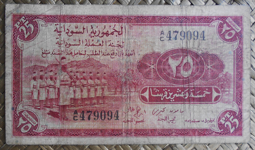 El billete de 20 francos de Djibouti de 1928-38 (pick.7b) muestra un anverso de coloración predominante lila amarronada y bandas rosadas, con el valor (texto y numeral), así como los pies de firma en color azul. Lleva las firmas de Marcel Borduge como Le Président y de Paul Baudouin como Le Directeur Général. Para el reverso nos ofrece el texto de su valor en árabe y amhárico (etíope), además de indicarnos en texto “DJIBOUTI” y “20FR” en sus respectivos marcos.