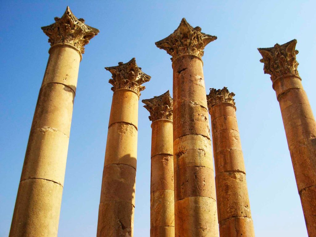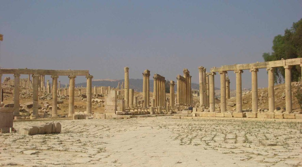 Con Alejandro Magno (s. III adC.) sería una de las ciudades más influyentes de la zona. Con Pompeyo (s. I adC.) pasaría a ser una ciudad de la Decápolis romana. Sería con el emperador Adriano (s. II) con quien se dio forma a su monumentalidad arquitectónica, cuyos vestigios contemplamos en la actualidad. El esplendor de la época dorada nos ha dejado, veinte siglos después, infraestructuras urbanas como el Arco de Adriano, el Cardo Máximo, el Tetrapilo, la plaza Oval …, religiosas, como el Templo de Artemisa (Diana en mitología romana), el Templo de Zeus (Júpiter en mitología romana) y el Ninfeo, de ocio como el Hipódromo, el Teatro Norte y el Teatro Sur, ¡todo un tesoro arquitectónico conservado milenios bajo la arena para nuestro descubrimiento y disfrute!