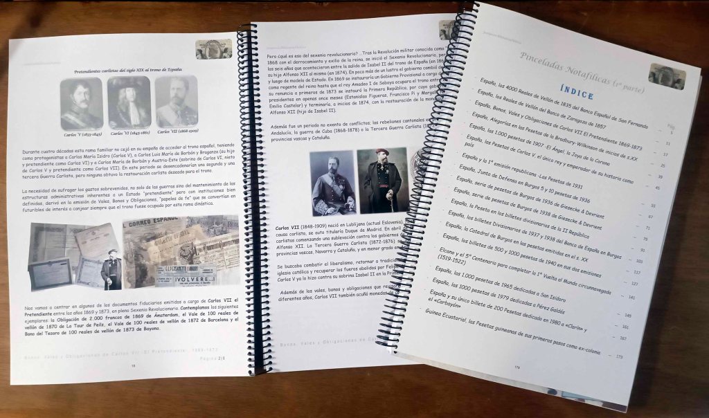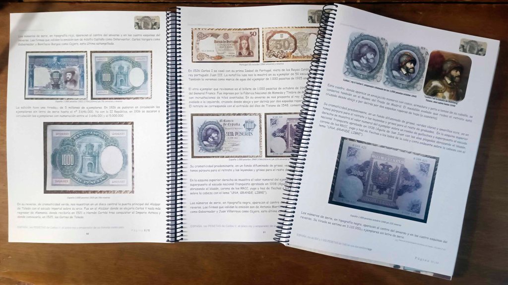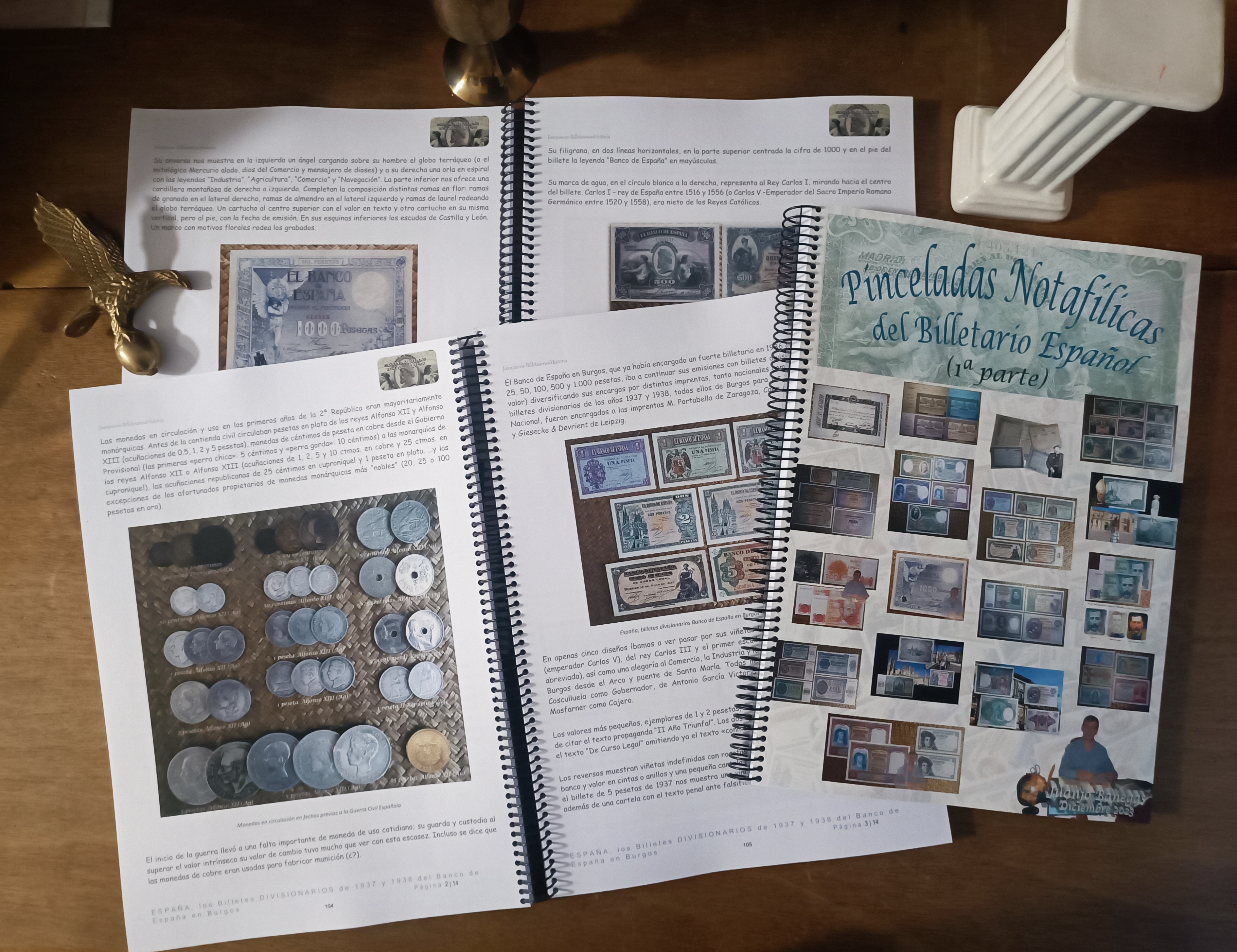 Y como no podía ser de otro modo, para mi primera publicación elegí el billetario de mi país y, de entre los varios artículos ya publicados en el blog, seleccioné diecinueve para ordenarlos cronológicamente y ofrecerlos impresos en formato físico.