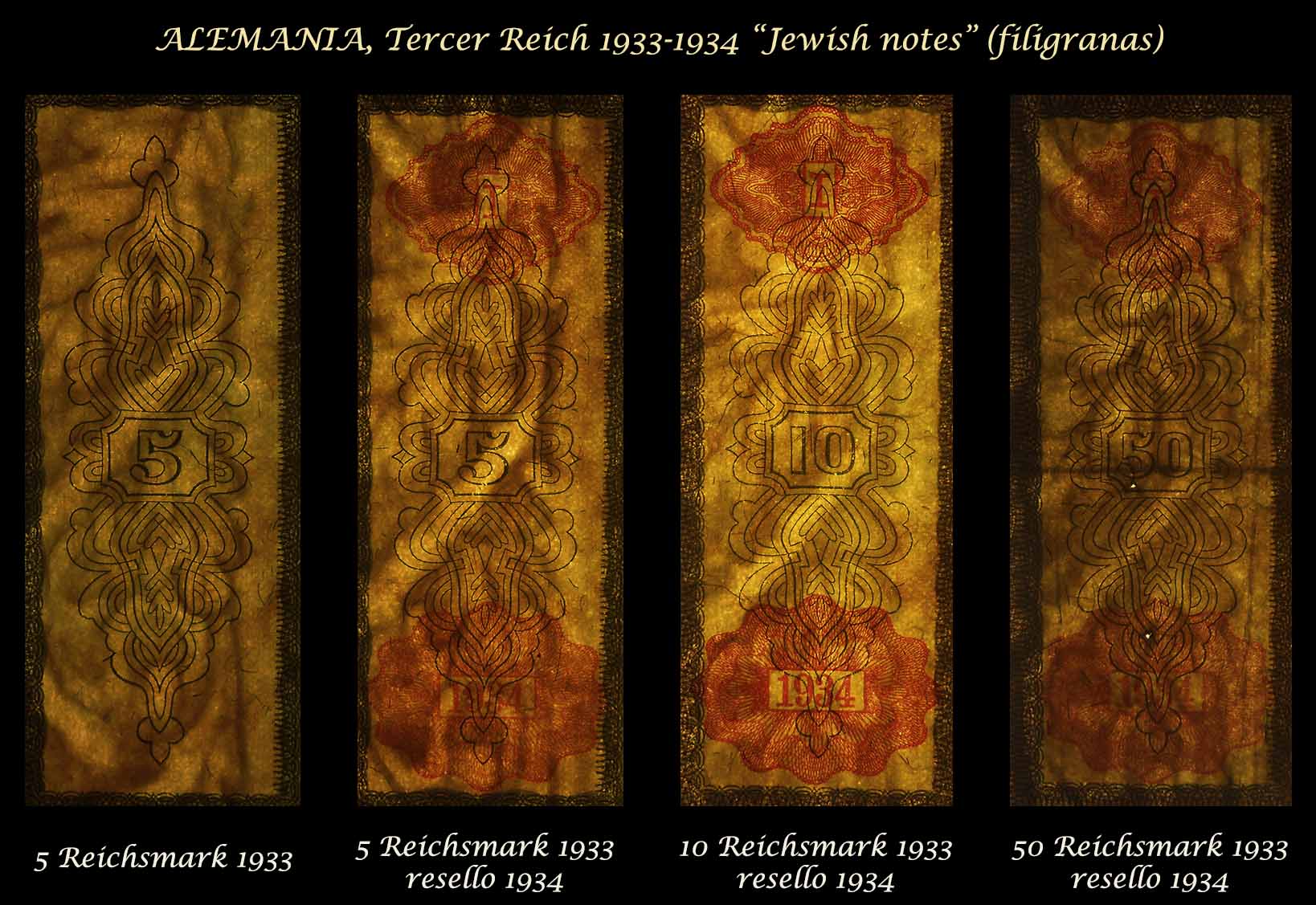 Alemania bonos Reichsmark -jewish notes- 1933-1934 anversos y reversos