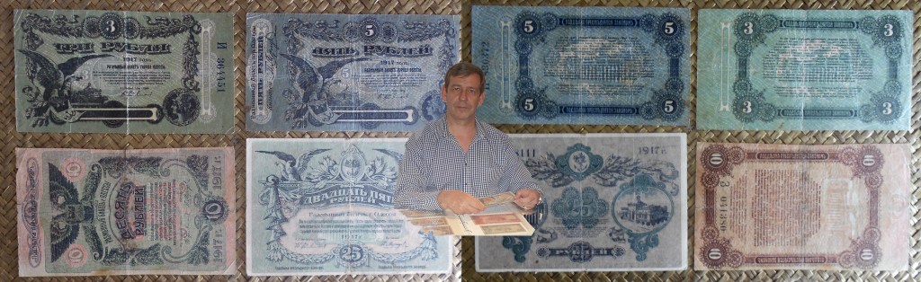 Este es uno de los motivos por los que el billetario ruso nos sorprende, no solo por su maestría y belleza, sino por la amplísima cantidad de ejemplares de emisiones distintas según regiones, ideologías, gobiernos provisionales, generales combatientes, dominios foráneos, etc. … en apenas una década en las que Rusia claudicó su Imperio Zarista, se asomó a la 1ª Guerra Mundial, continuó con su particular Guerra Civil, vio nacer la Revolución bolchevique e instauró la Unión de Repúblicas Socialistas Soviéticas (URSS), …¡todo ocurrió entre 1914 y 1922!