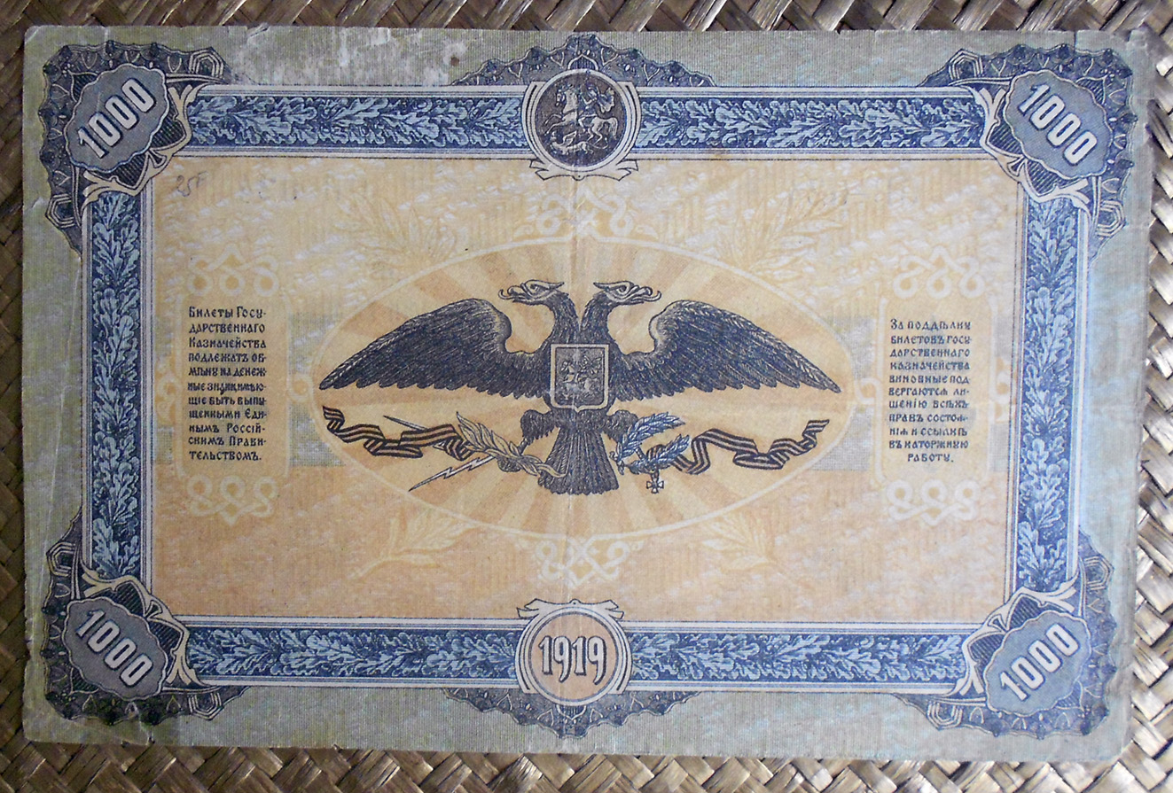 South Russia 1.000 rublos 1919 -Gral. Wrangel pk.S424a reverso