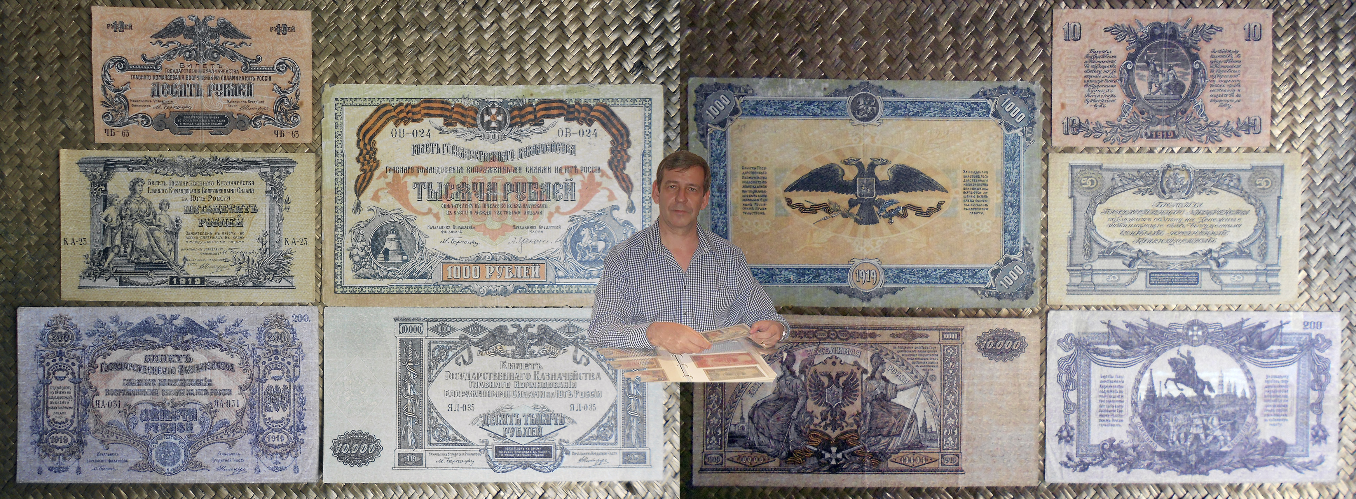 Desde “Miscelánea” seguimos en los tiempos de la Revolución Rusa, para repasar un billetario emitido para uno de esos generales del bando contrarrevolucionario o tropas del ejército blanco. Militares que pertenecieron mayoritariamente a los ejércitos zaristas en la época del Imperio (Kolchak, Yudenich, Miller, Denikin, Kornilov, Wrangel, Krasnov, …). Esta vez revisaremos la serie de rublos de 1919 para los territorios de Rusia del Sur bajo el mando del General Wrangel.