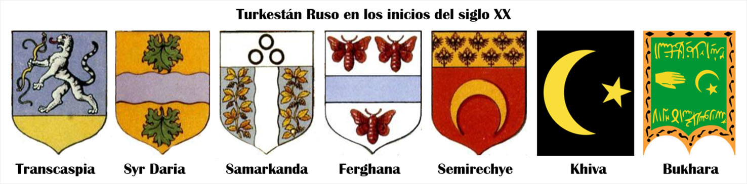 El Turkestán Ruso a comienzos del s.XX estaba compuesto por los Oblast (regiones) de Transcaspia, Syr Darja, Samarcanda, Ferghana, Semirechye, el Janato de Khiva y el Emirato de Bukhara. Tras la Revolución Rusa de 1917 se crearía la República Autónoma Socialista Soviética del Turkestán, la República de Bukhara y la República de Khorezm, y en 1924 se desmembrarían en las Repúblicas Socialistas Soviéticas (RSS) de Uzbekistán, Turkmenistán y Kazajistán.