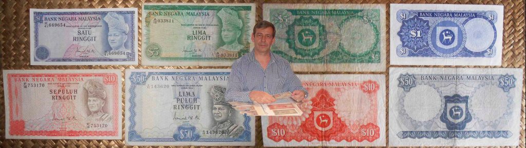 Contemplaremos los billetes de Brunei de 1, 5 y 10 ringgit (o dólar bruneano) de 1967. Esta sería la 1ª emisión de billetes tras abandonar la Junta de Comisionados de Malaya y Borneo Británico (Board of Commissioners of Currency Malaya & British Borneo) en 1967. La evolución monetaria durante el Protectorado la revisamos anteriormente en “Dólares de Straists Settlement, Sarawak, Malaya & British Borneo”.
