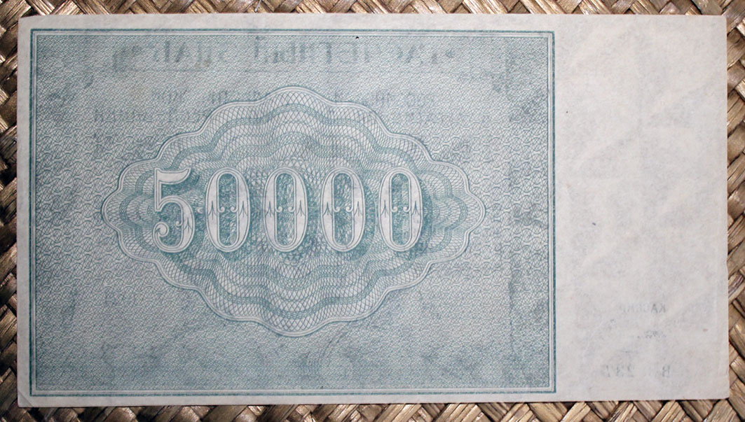 El billete de 50 rublos de la RSFSR de 1918 ofrece grabados en cromaticidad marrón a ambos lados en papel color marrón claro.