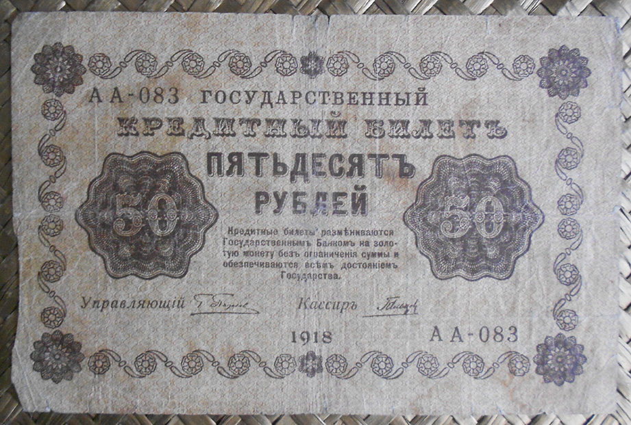 Desde “Miscelánea” continuamos en la Revolución Rusa y su variopinto billetario. Hace unas semanas revisamos un billetario tardío de la R.S.F.S.R. (República Socialista Federal Soviética de Rusia), comúnmente conocida como la “Rusia Bolchevique” (el emitido por el “Comisariado de Finanzas” en 1921). Esta vez le toca a una de las primeras series de rublos emitidas tras la fundación de la RSFSR en 1918.