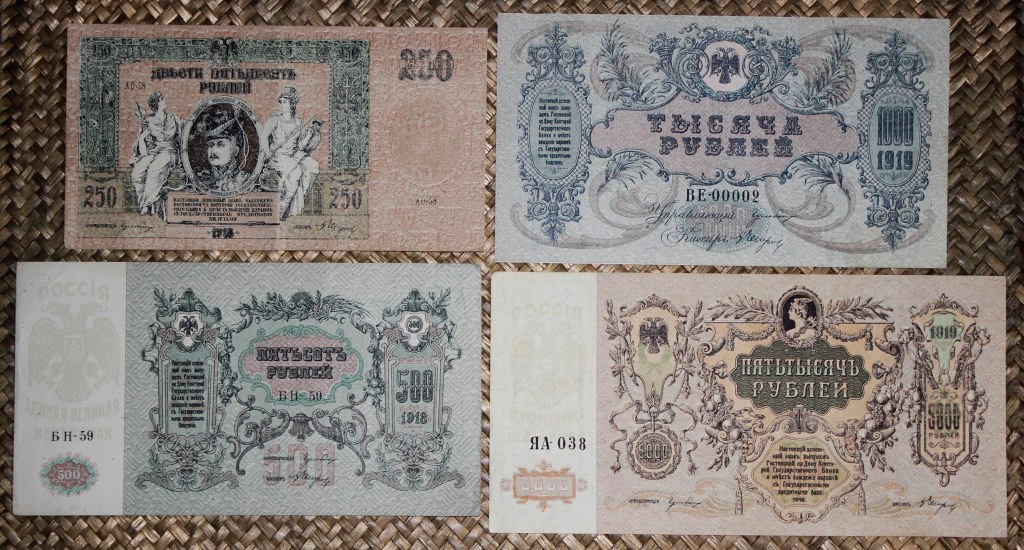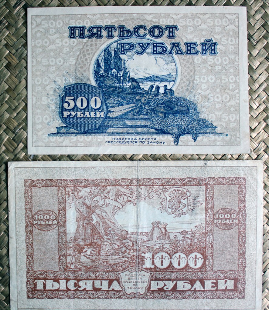 Estas notas del Tesoro estatal también serían puestas en circulación por el Directorio de Samara, por el Gobierno Provisional de Siberia, por el Gobierno de Chaikovskiy del Norte de Rusia o por el Comité de la Región de Kamchatka.