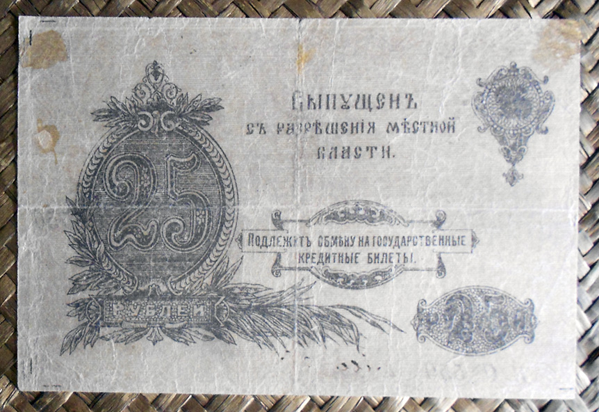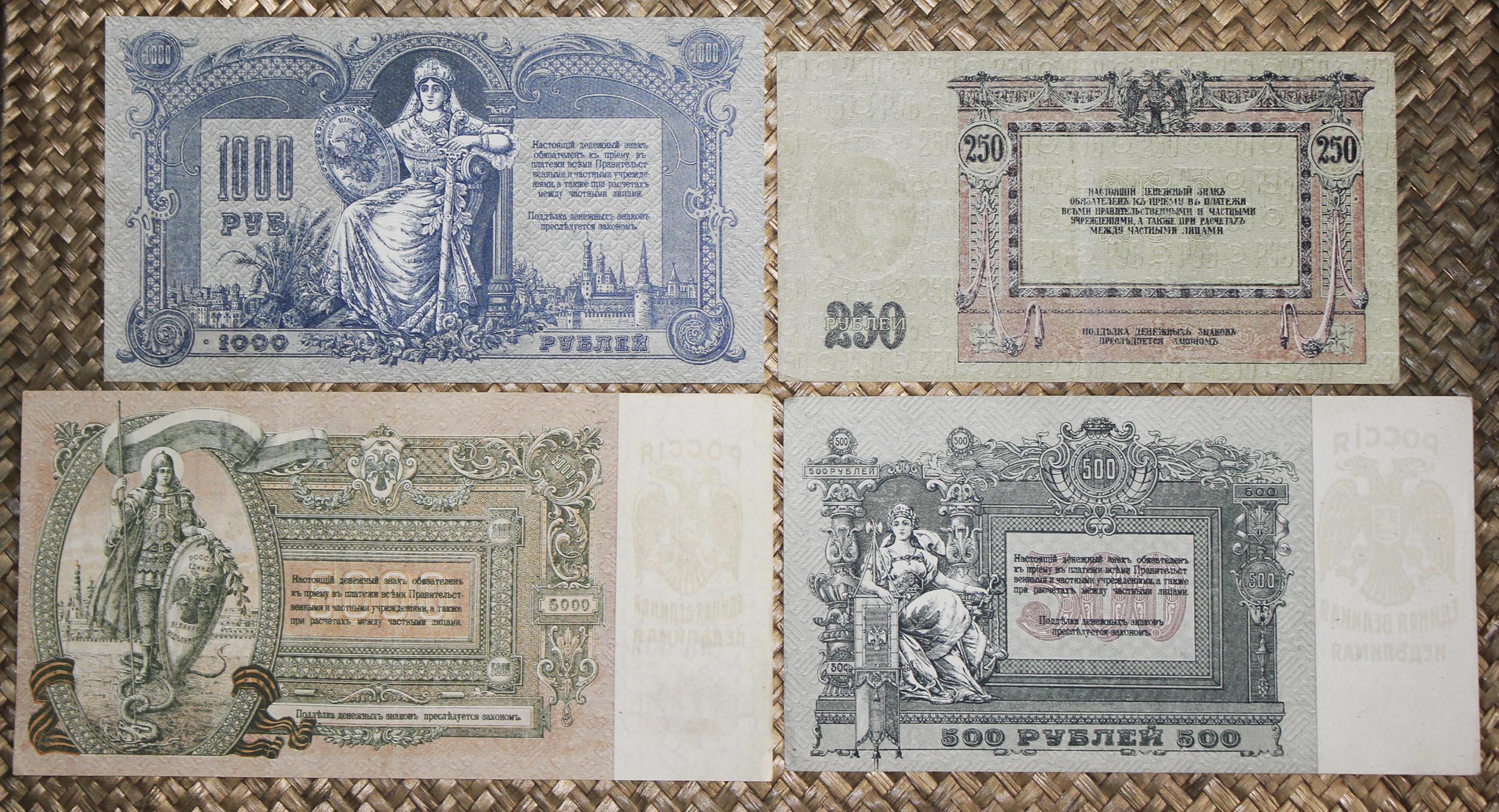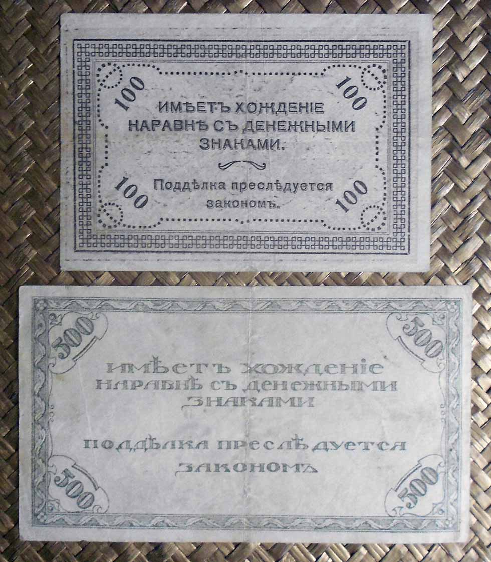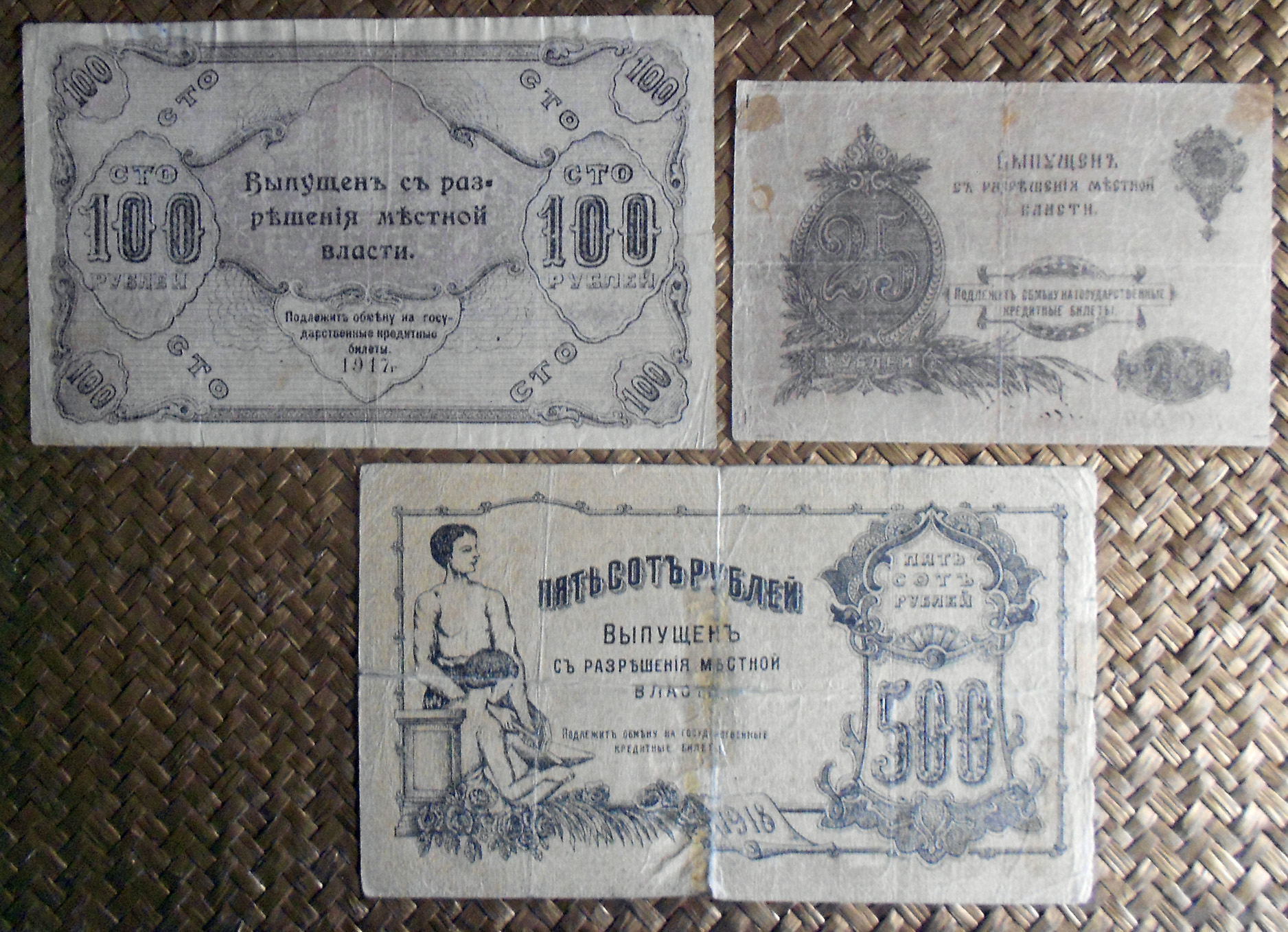 Estas notas del Tesoro estatal también serían puestas en circulación por el Directorio de Samara, por el Gobierno Provisional de Siberia, por el Gobierno de Chaikovskiy del Norte de Rusia o por el Comité de la Región de Kamchatka.