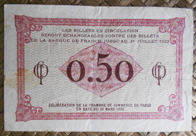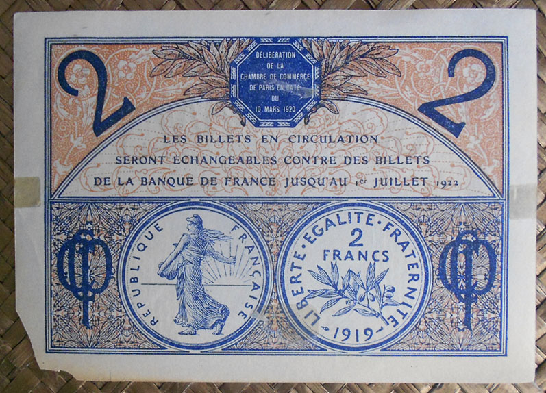 Anverso y reverso rodeados de una greca octogonal de corte clásico. No posee marca de agua. Se presenta en dos idiomas, con el francés en el anverso y el texto alemán en el reverso.