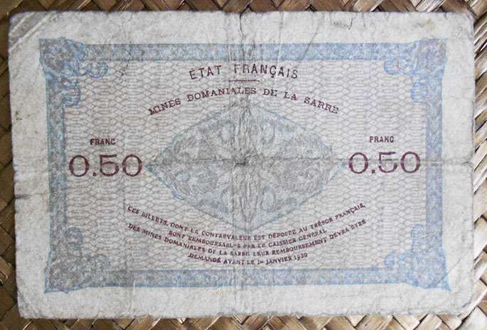 Los billetes fueron impresos por el Banque de France en París. Además, el intercambio sirvió a la administración francesa para obtener un panorama de la cantidad total de capital disponible en la región del Sarre, de los antiguos marcos del Reichsbank alemán. Recordaros que este territorio alemán estuvo antes en manos de Francia desde 1919 hasta 1935 poseyendo moneda propia, en francos, validada por las Mines Domaniales de la Sarre.
