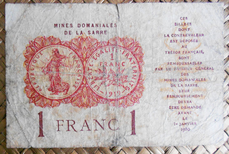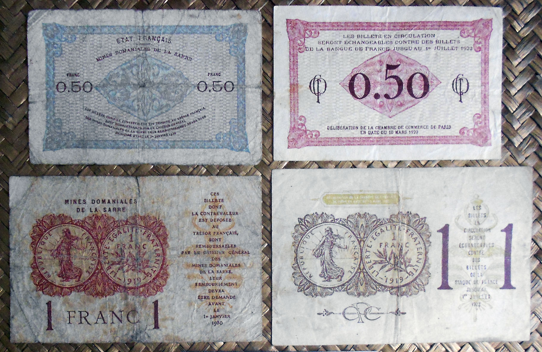 Los billetes fueron impresos por el Banque de France en París. Además, el intercambio sirvió a la administración francesa para obtener un panorama de la cantidad total de capital disponible en la región del Sarre, de los antiguos marcos del Reichsbank alemán. Recordaros que este territorio alemán estuvo antes en manos de Francia desde 1919 hasta 1935 poseyendo moneda propia, en francos, validada por las Mines Domaniales de la Sarre.