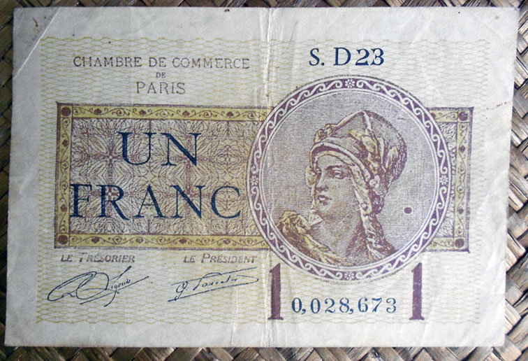 El billete de 1 marco del Sarre de 1947 que os presento muestra en su anverso la figura de estilo clásico de la cabeza de Zeus (en la mitología griega) o Júpiter (en la mitología romana), supremo de los dioses del Olimpo. En su reverso una figura femenina sosteniendo con sus brazos los bienes obtenidos de sus cultivos, alegoría de Deméter (griega) o Ceres (romana), diosa de la Agricultura y de la Cosecha.