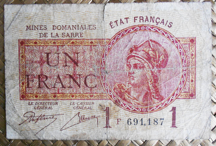 El Saar-Mark es uno de los billetes más efímeros que conozco, ya que solo tuvo vigor como medio de pago entre junio y noviembre de 1947 en Alemania, y hasta enero de 1948 para pagos e intercambios en la región del Sarre. A partir de entonces, fue reemplazado por el franco francés. El tipo de cambio establecido fie de 1 Saar-Mark = 20 Francos.