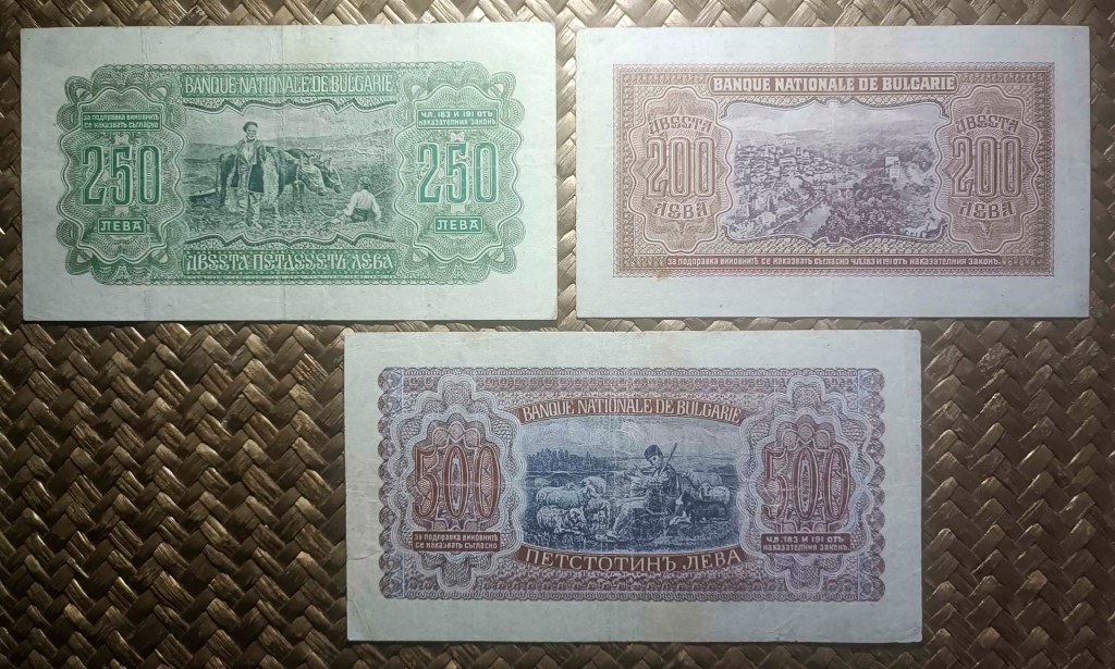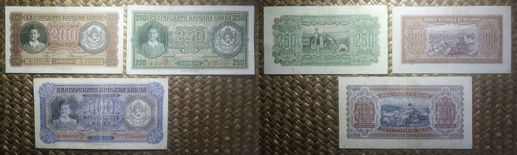 Vamos a revisar la efímera serie de billetes búlgaros que iban a ofrecer el retrato del joven niño Simeón II tras la muerte de su padre, el zar Boris III. Contemplamos los billetes de 200 levas, 250 levas y 500 levas de Bulgaria de 1943. La serie se completaba con los valores de 1000 y 5000 levas, pero estos dos últimos nunca llegaron a circular. Fue desmonetizada en 1947.