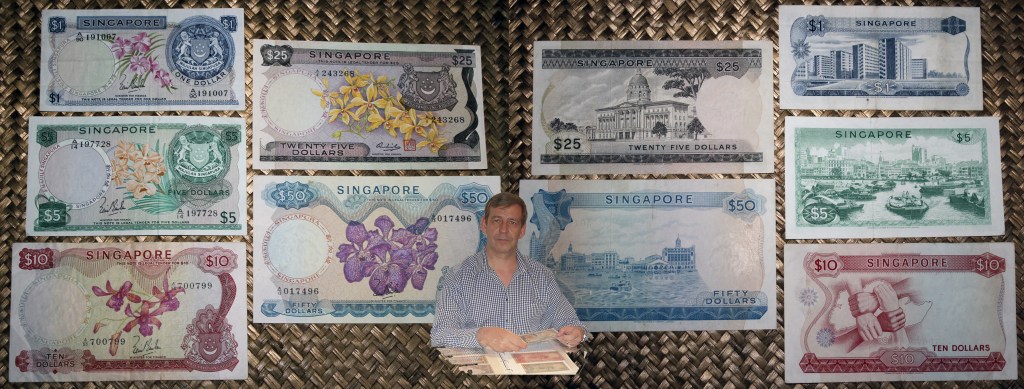 Desde “Miscelánea” nos mantenemos en el sureste asiático para revisar el billetario del pequeño archipiélago de Singapur. Revisaremos ejemplares de la primera serie de dólares emitidos como país independiente.