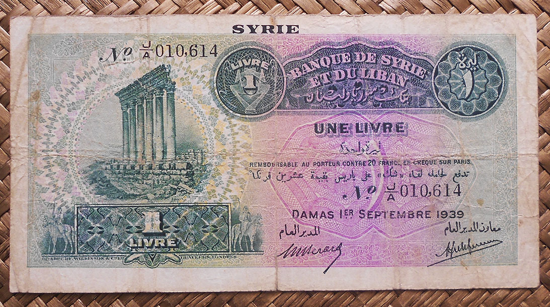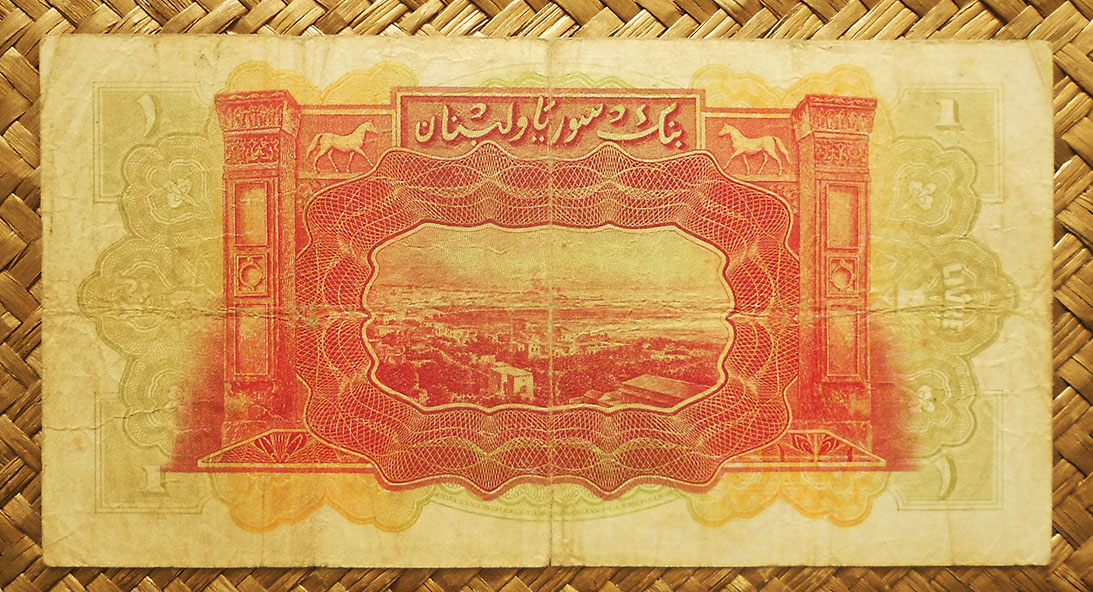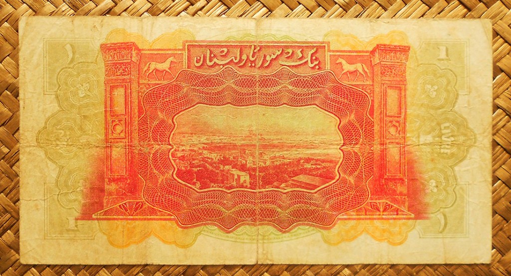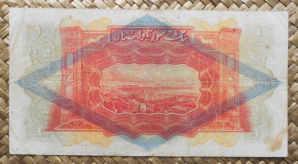 El billete de 1 libra de Siria de 1982, de cromaticidad predominante en tonos marrones, nos muestra en su anverso la imagen de un obrero de la industria en su banco de trabajo. (Este grabado comenzó a usarse en la emisión de 1963).