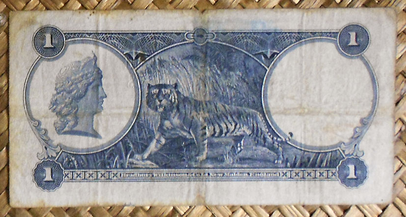 El reverso es todo para un majestuoso tigre, «el tigre de Malasia», que fue “contraportada” de todas las series de billetes que se emitieron en varias décadas.